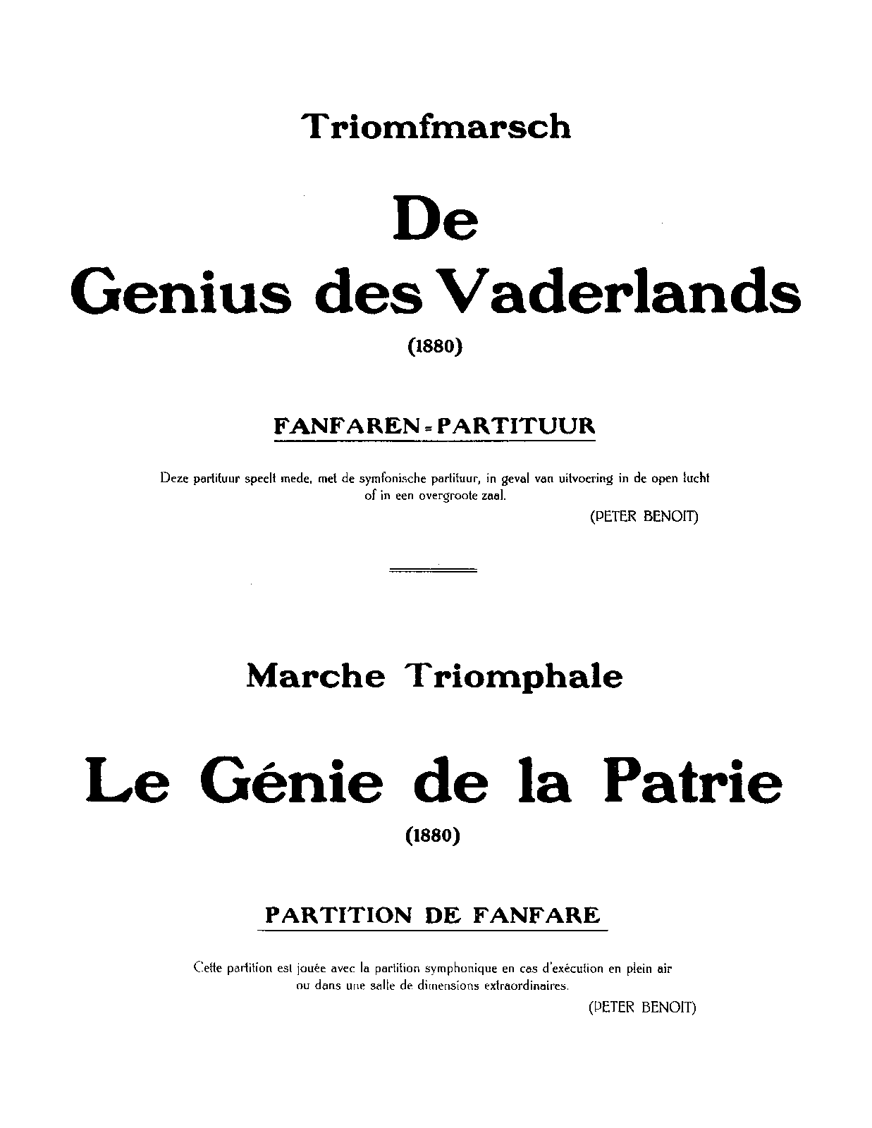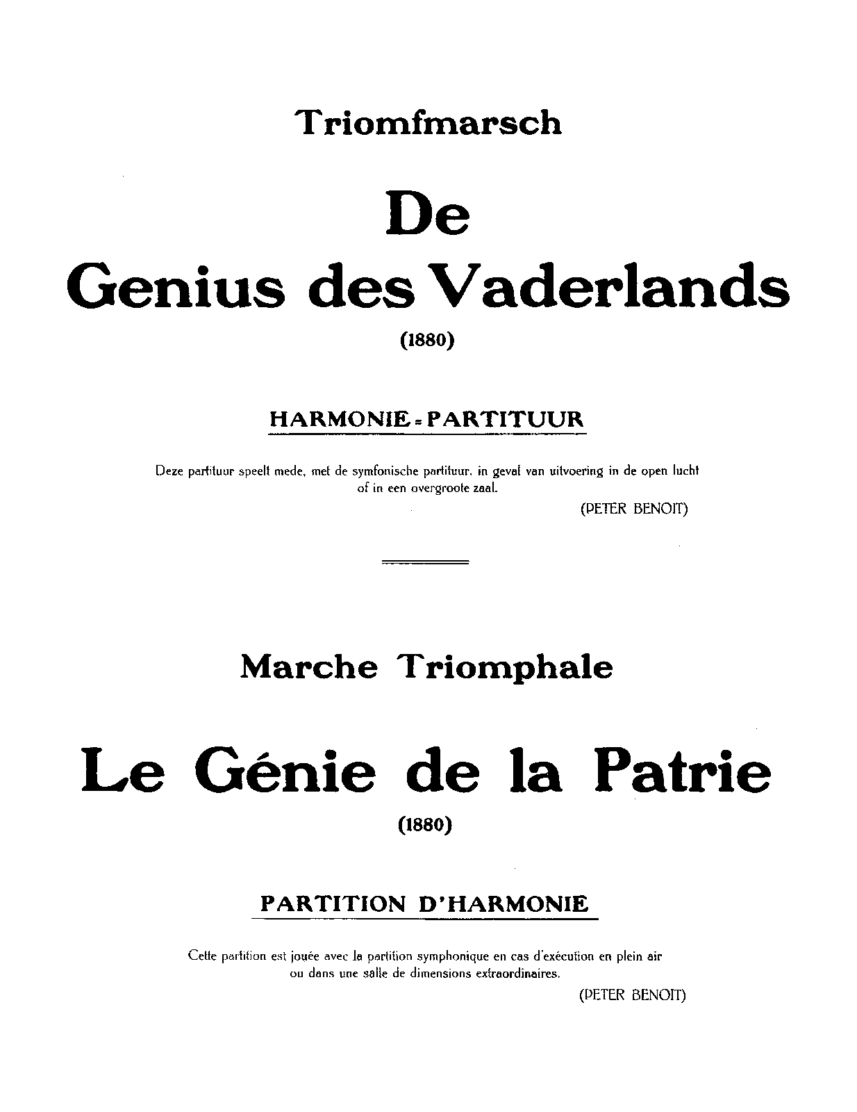 Peter Benoit Orkestpartituren, XVII De genius des vaderlands Antwerp: Peter Benoit-Fonds, n.d. Plate 5788.
