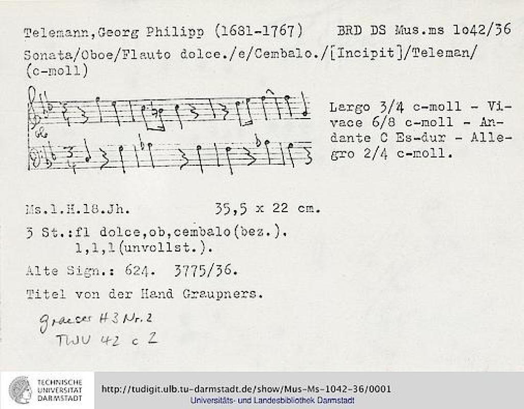 Opus/Catalogue NumberOp./Cat. No. TWV 42:c2