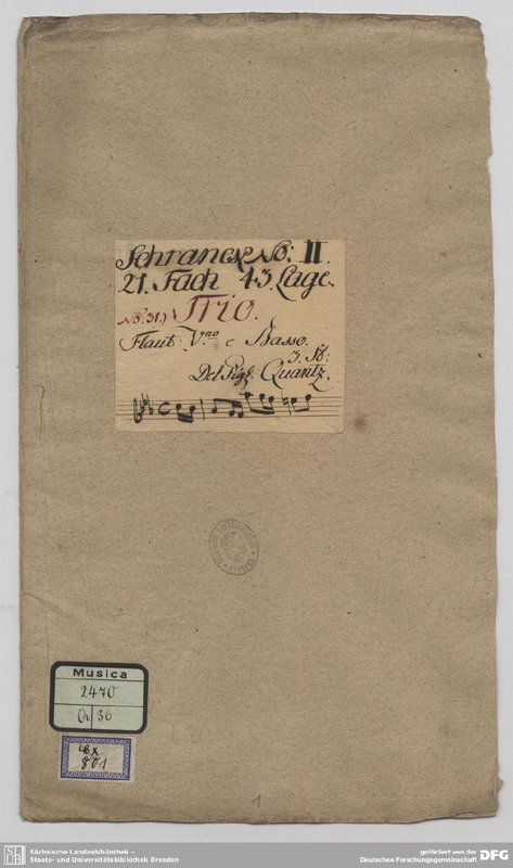 | Authorship Note The authorship of this Sonata is uncertain. It was listed in Breitkopf's catalogue of 1763 as a work by Johann Gottlieb Goldberg; however, the only surviving manuscript (below) attributes the work to Quantz. |