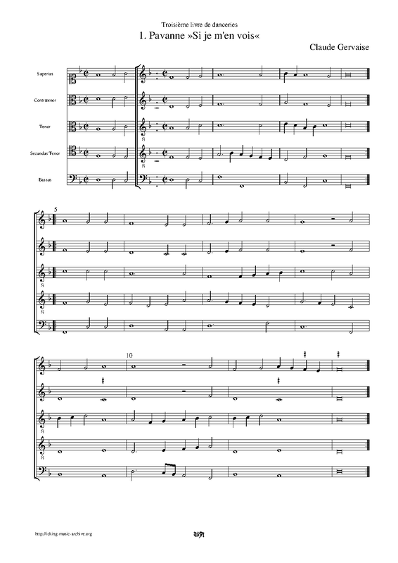 ⇒ 45 more: 2. Gaillarde "Si je m'en vois" • 3. Pavanne "Est il conclud" • 4. Gaillarde "Est il conclud" • 5. Pavanne "L'Admiral" • 6. Gaillarde "L'Admiral" • 7. Pavanne de la guerre • 8. Gaillarde [de la guerre] • 9. Gaillarde • 10. Gaillarde • 11. Bransle simple I • 12. Bransle simple II • 13. Bransle simple III • 14. Bransle simple IV • 15. Bransle simple V • 16. Bransle simple VI • 17. Bransle gay I • 18. Bransle gay II • 19. Bransle gay III • 20. Bransle gay IV • 21. Bransle gay V • 22. Bransle gay VI • 23. Almande I • 24. Almande II • 25. Almande III • 26. Almande IV • 27. Almande V • 28. Almande VI • 29. Almande VII • 30. Almande VIII "Et d'ou venez vous ma dame Lucette" • 31. Bransle I • 32. Bransle II • 33. Bransle III • 34. Bransle IV • 35. Bransle V • 36. Bransle VI • 37. Bransle VII • 38. Bransle VIII • 39. Bransle IX • 40. Bransle X • 41. Bransle I • 42. Bransle II • 43. Bransle III • 44. Bransle IV • 45+46. Bransle V+VI • Engraving files (Capella)