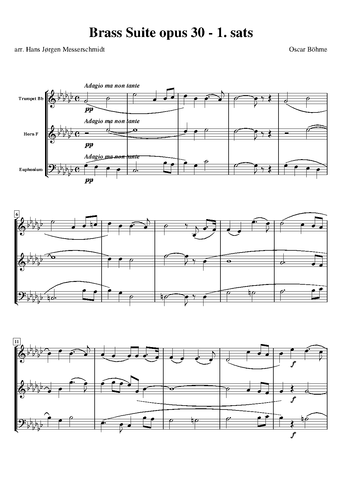 | Instrumentation | cornet (B♭), 2 trumpets (B♭), bass trumpet (E♭) (or alto horn), baritone horn (B♭) (or trombone), euphonium (B♭) |