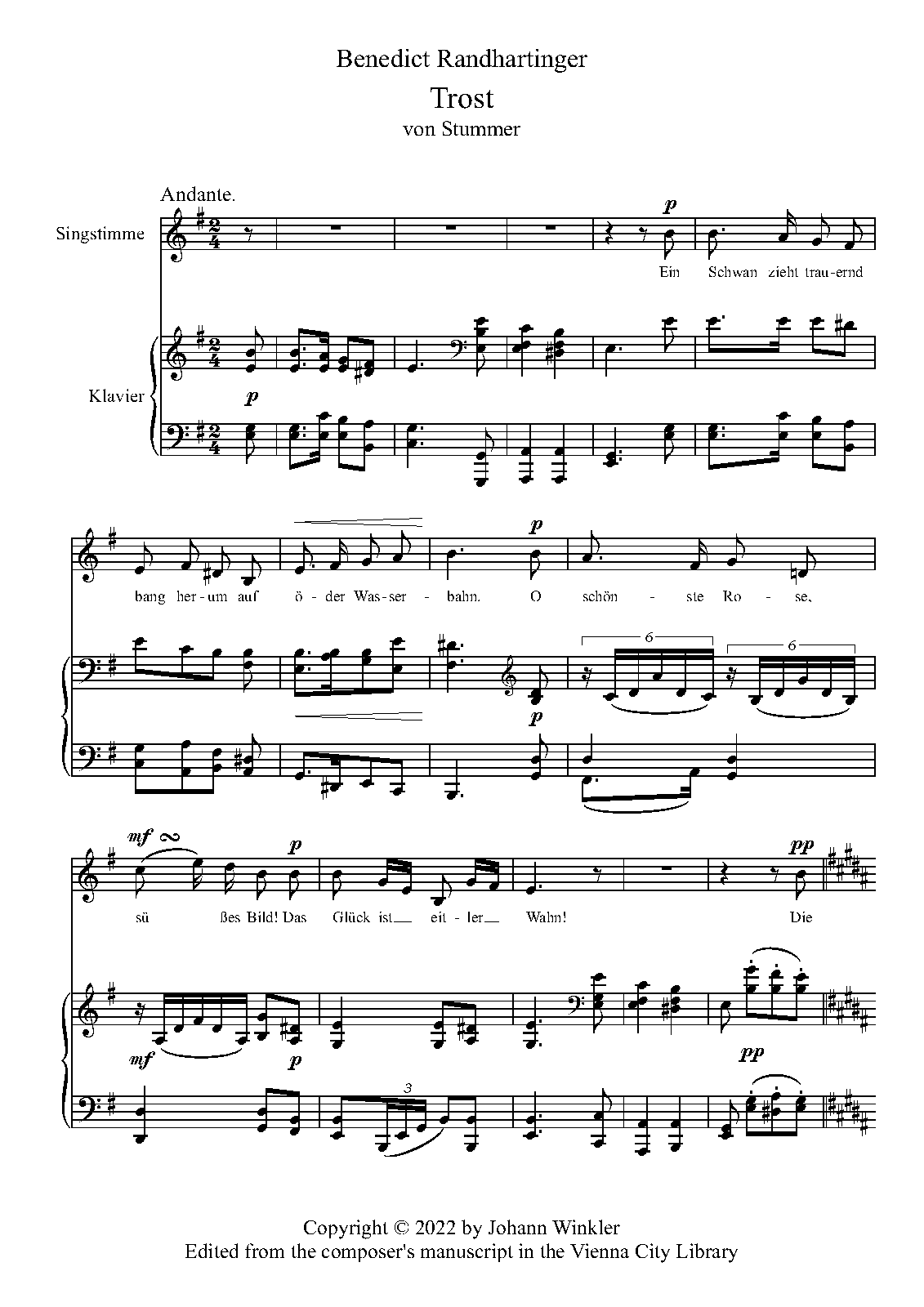 | Alternative. Title | Ein Schwan zieht trauernd bang herum auf öder Wasserbahn |