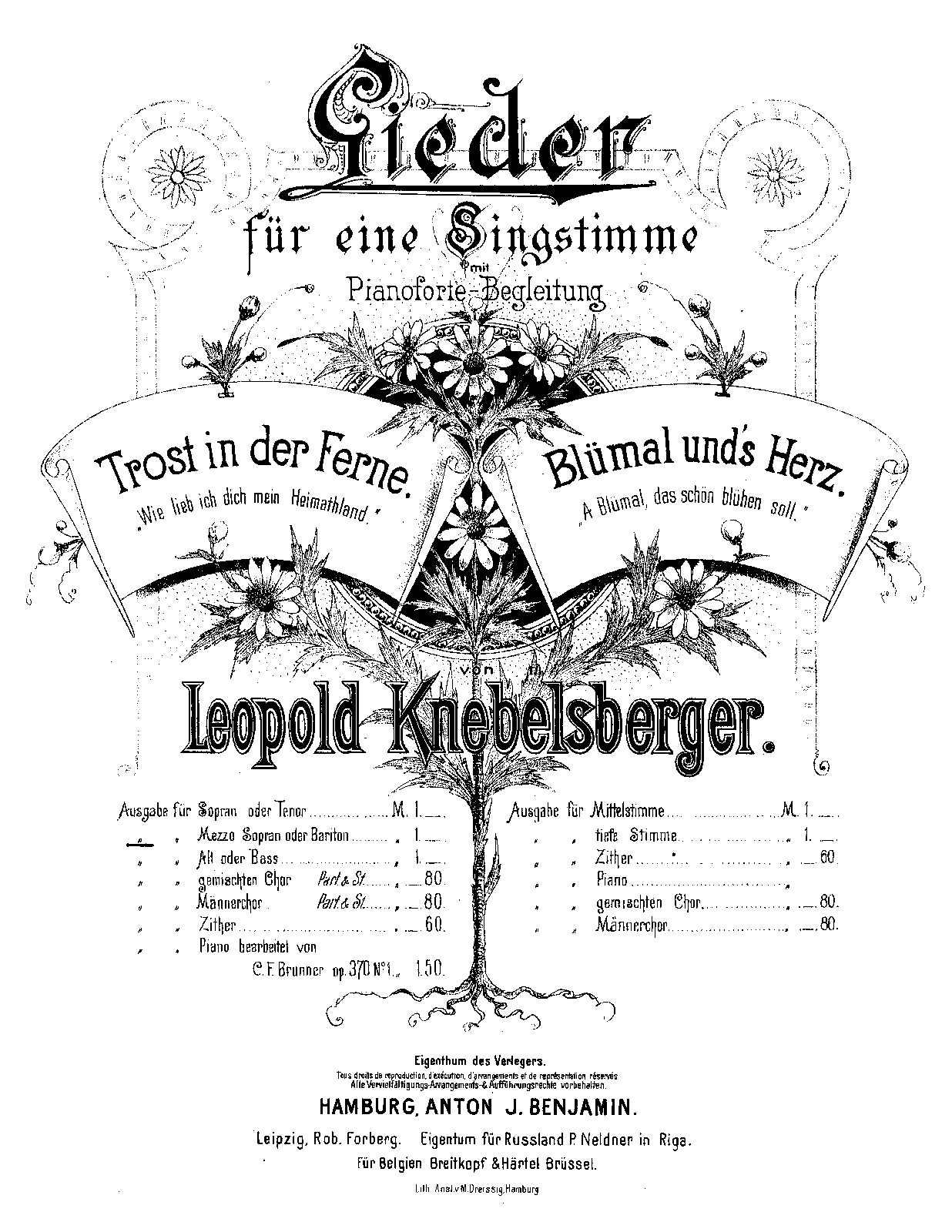| Genre Categories | Lieder; Songs; For voice, piano; |