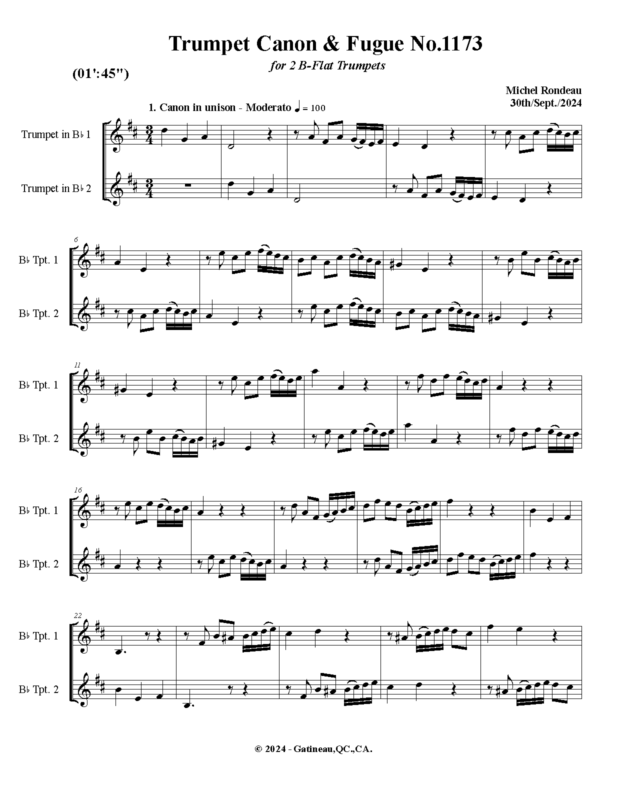 | Work Title | Trumpet Canon & Fugue No.1173 |