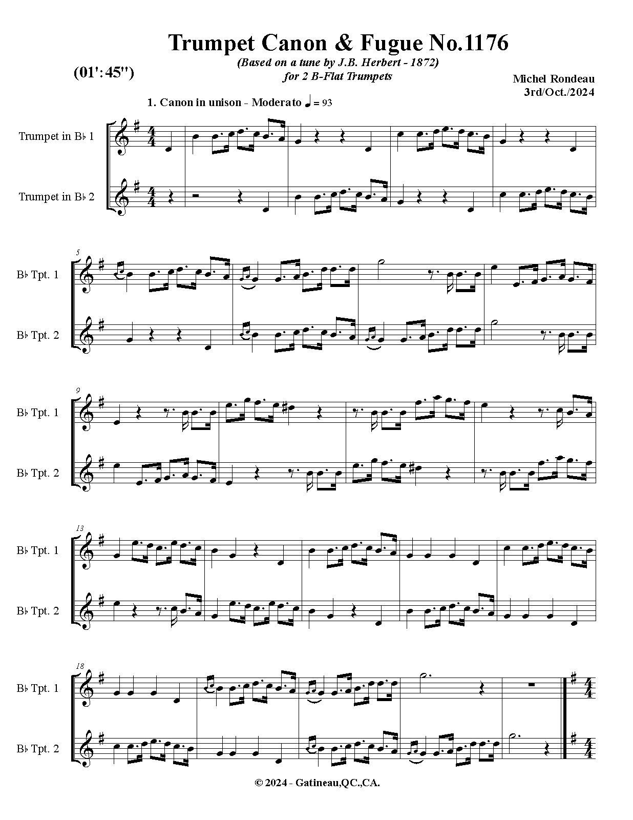 | Work Title | Trumpet Canon & Fugue No.1176 |