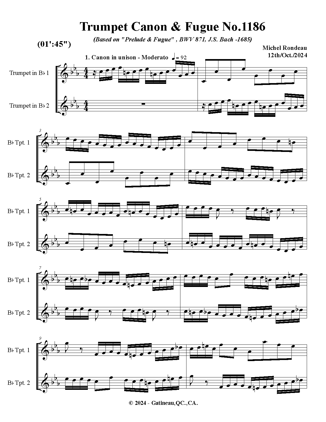 Trumpet Canon & Fugue No.1186 (Rondeau, Michel)