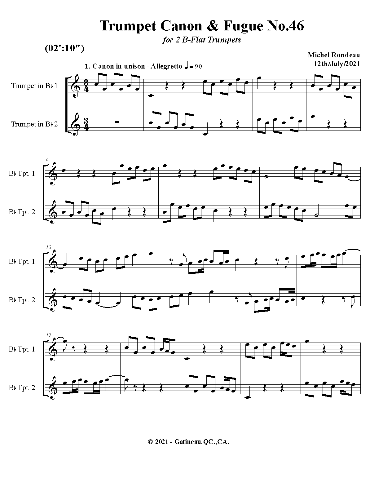 Trumpet Canon & Fugue No.46 (Rondeau, Michel)