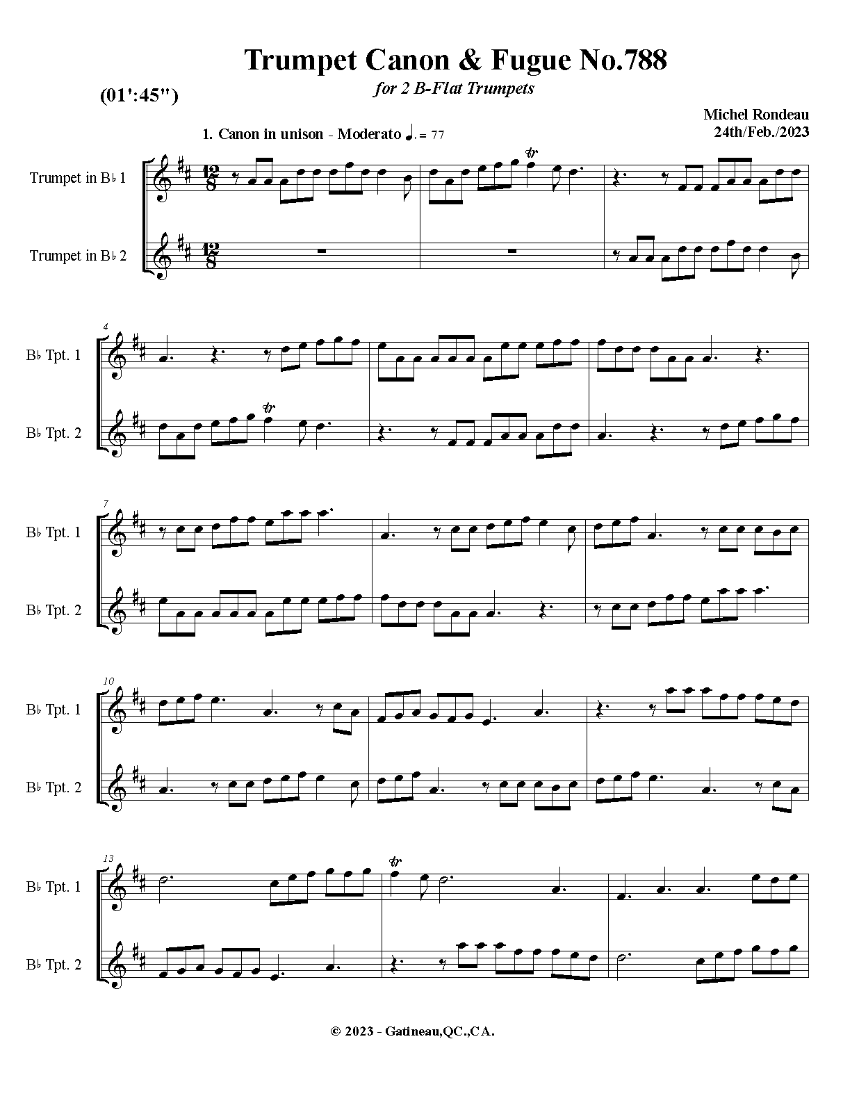 | Work Title | Trumpet Canon & Fugue No.788 |