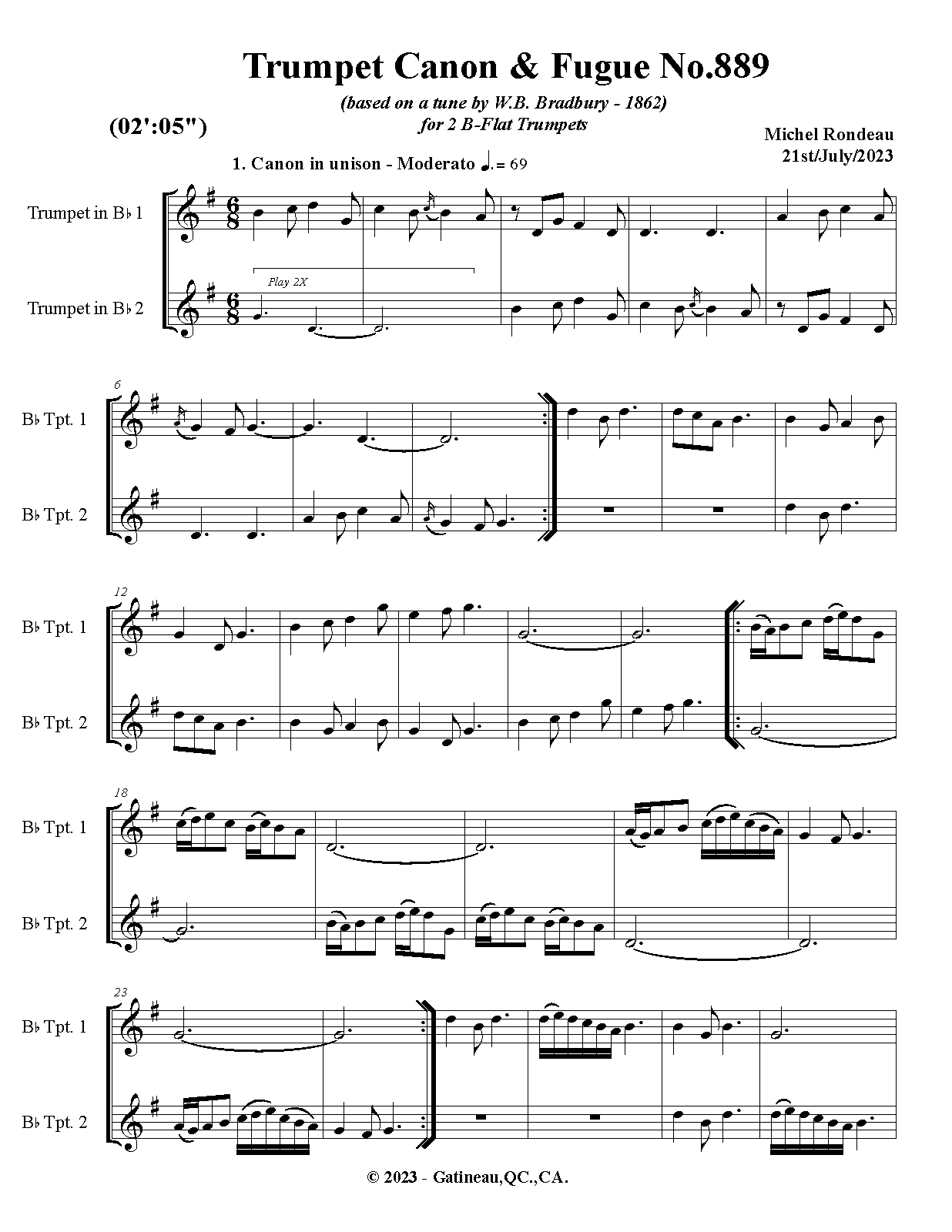 | Work Title | Trumpet Canon & Fugue No.889 |