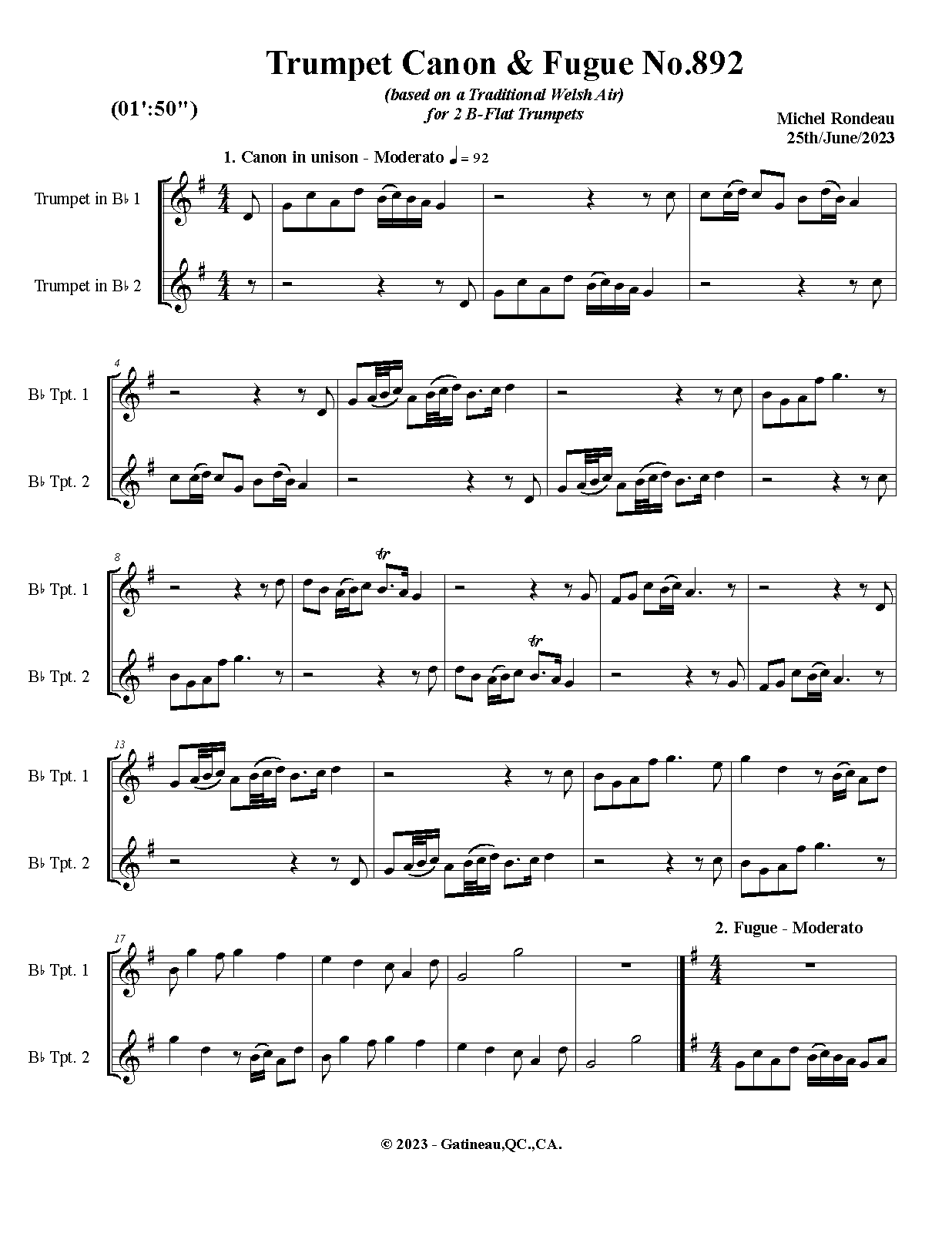 | Work Title | Trumpet Canon & Fugue No.892 |