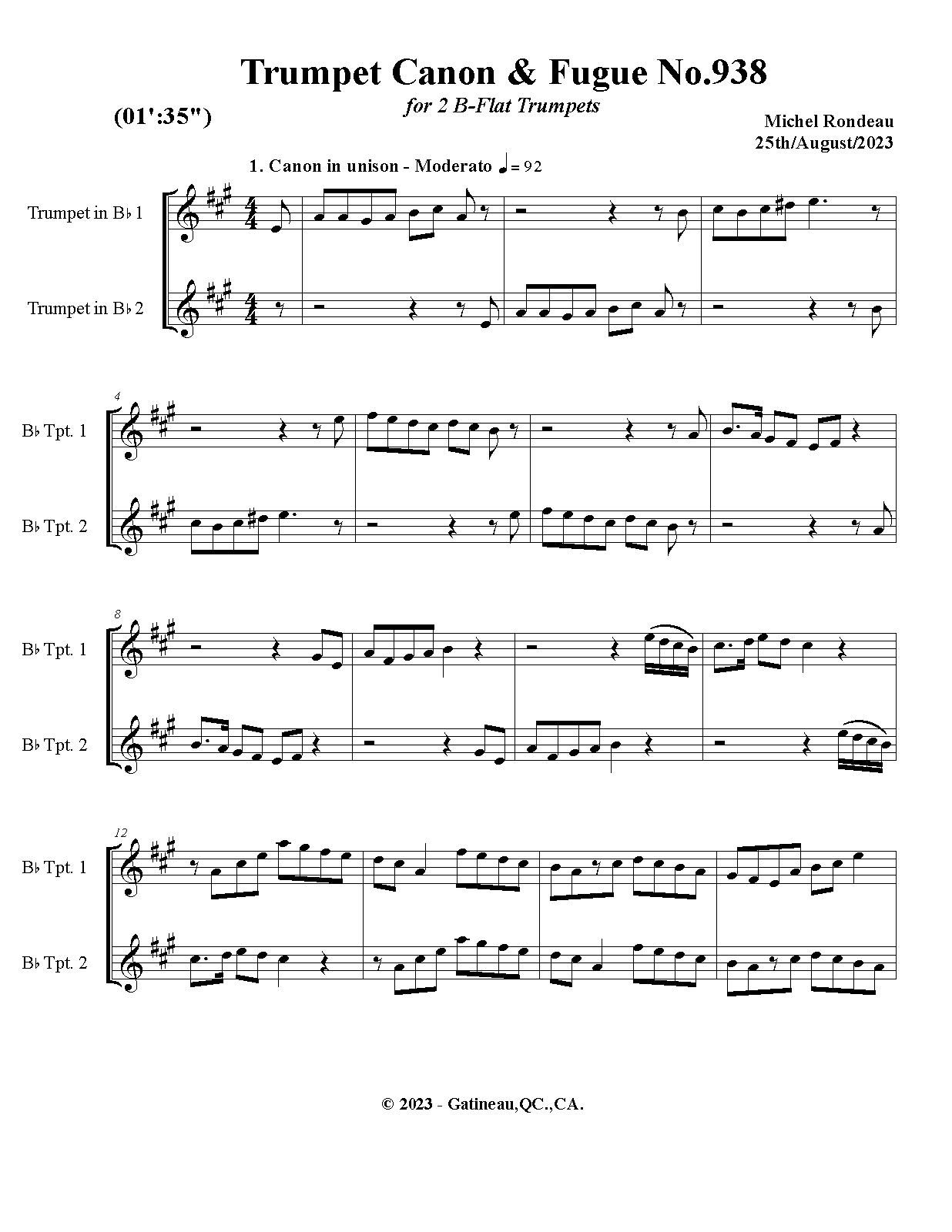 | Work Title | Trumpet Canon & Fugue No.938 |