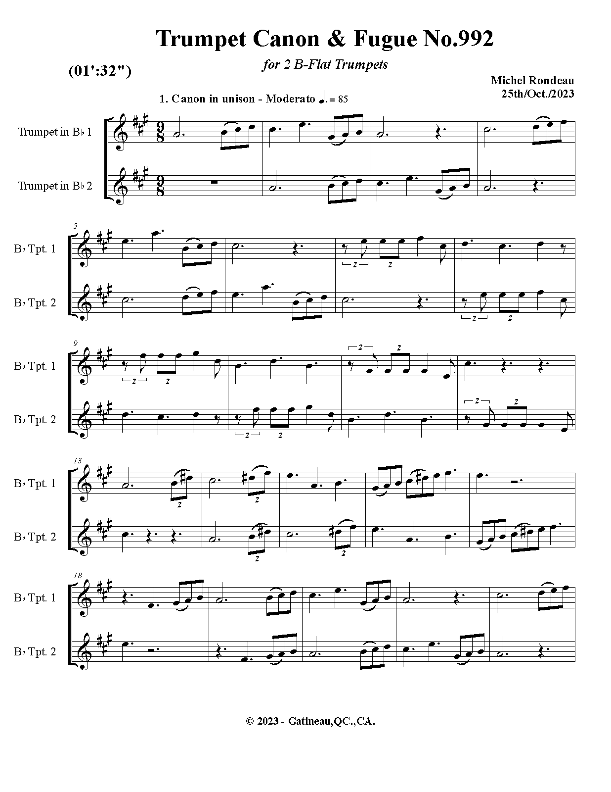 | Work Title | Trumpet Canon & Fugue No.992 |