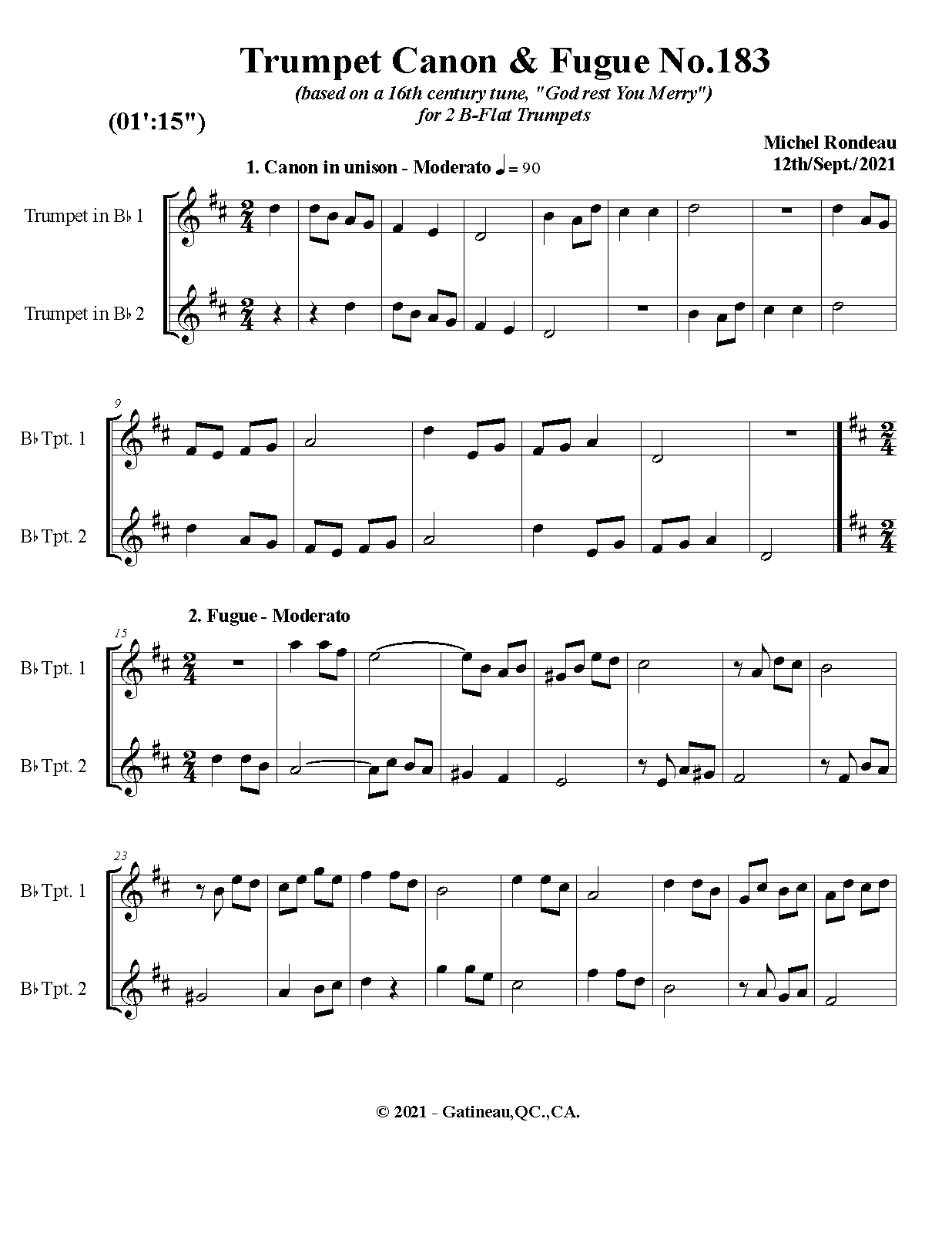Trumpet Canon & Fugue No.183 (Rondeau, Michel)
