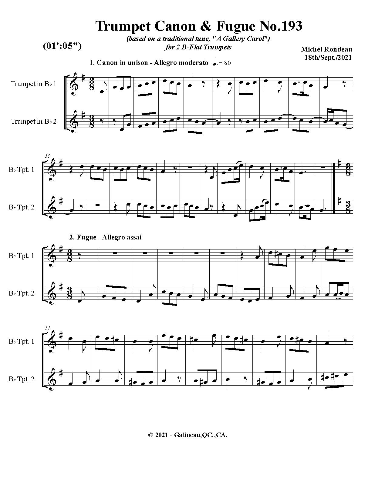 Trumpet Canon & Fugue No.193 (Rondeau, Michel)