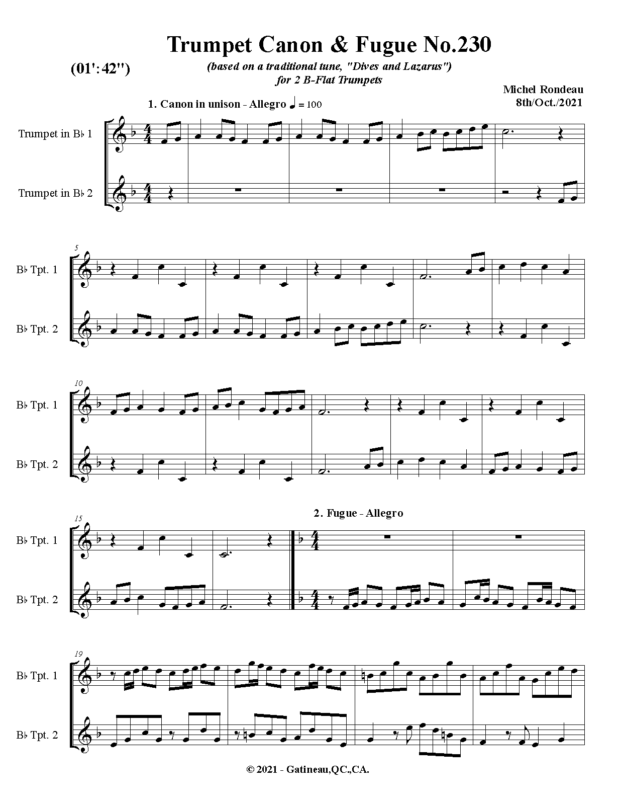 | Work Title | Trumpet Canon & Fugue No.230 |