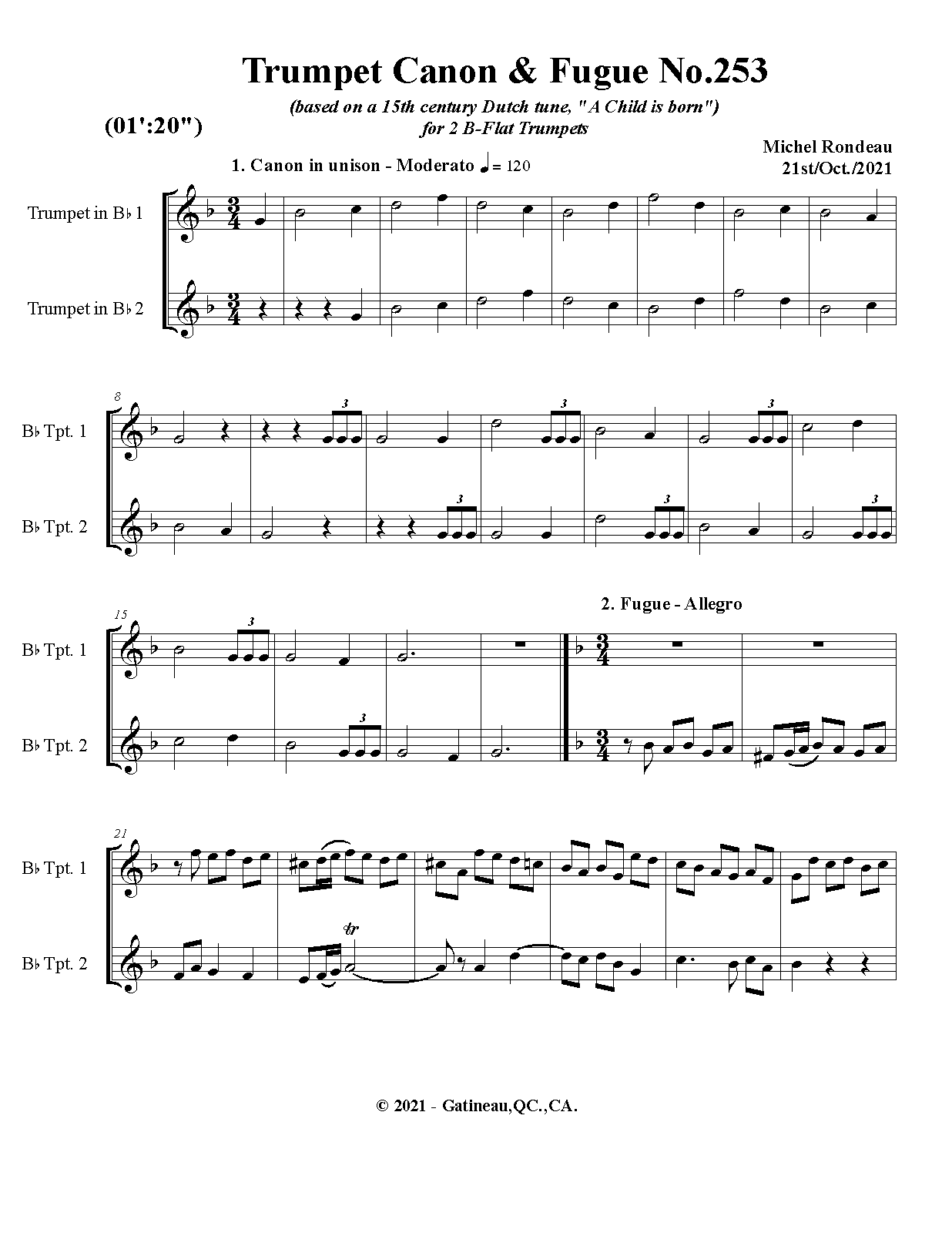 Trumpet Canon & Fugue No.253 (Rondeau, Michel)
