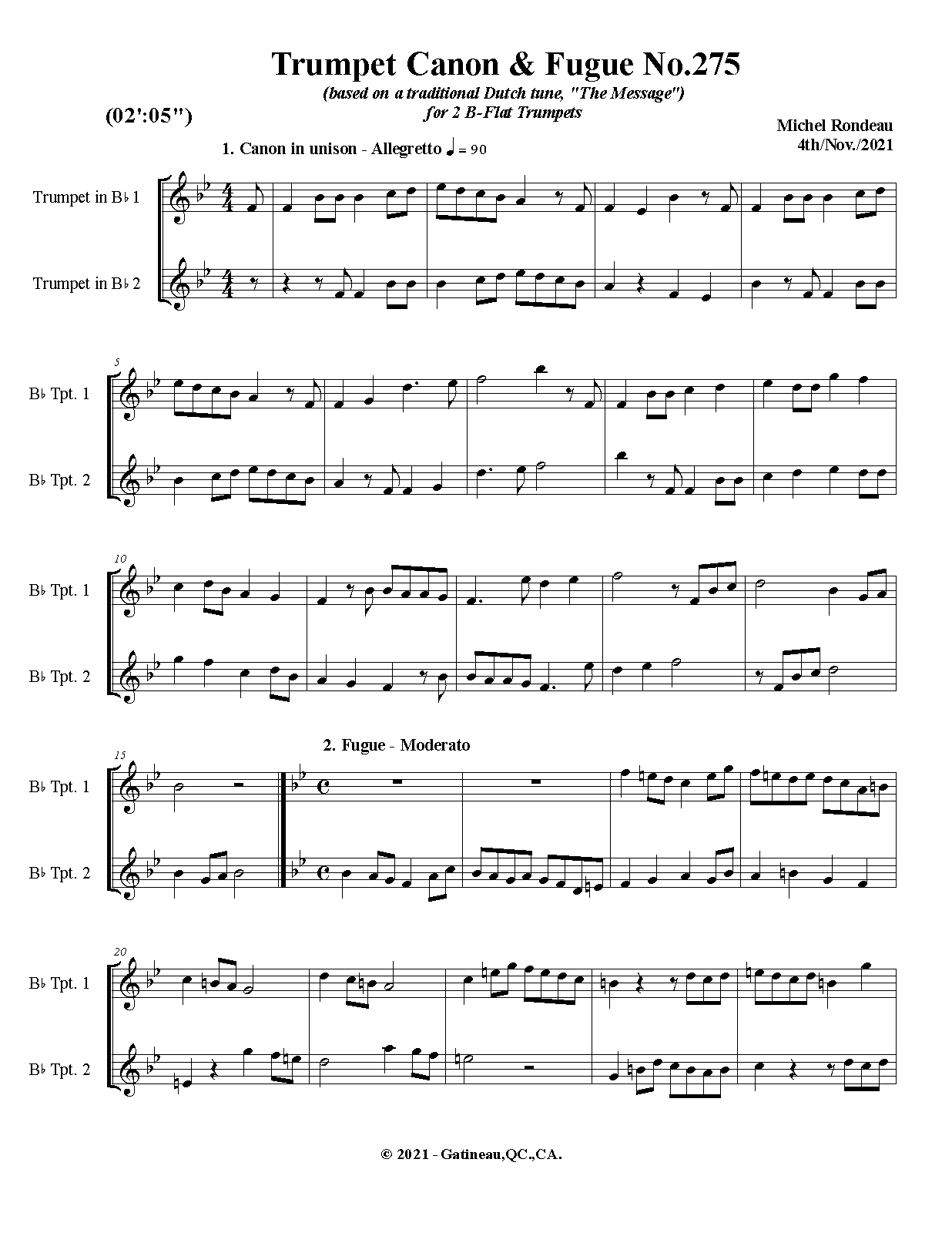 Work Title Trumpet Canon & Fugue No.275