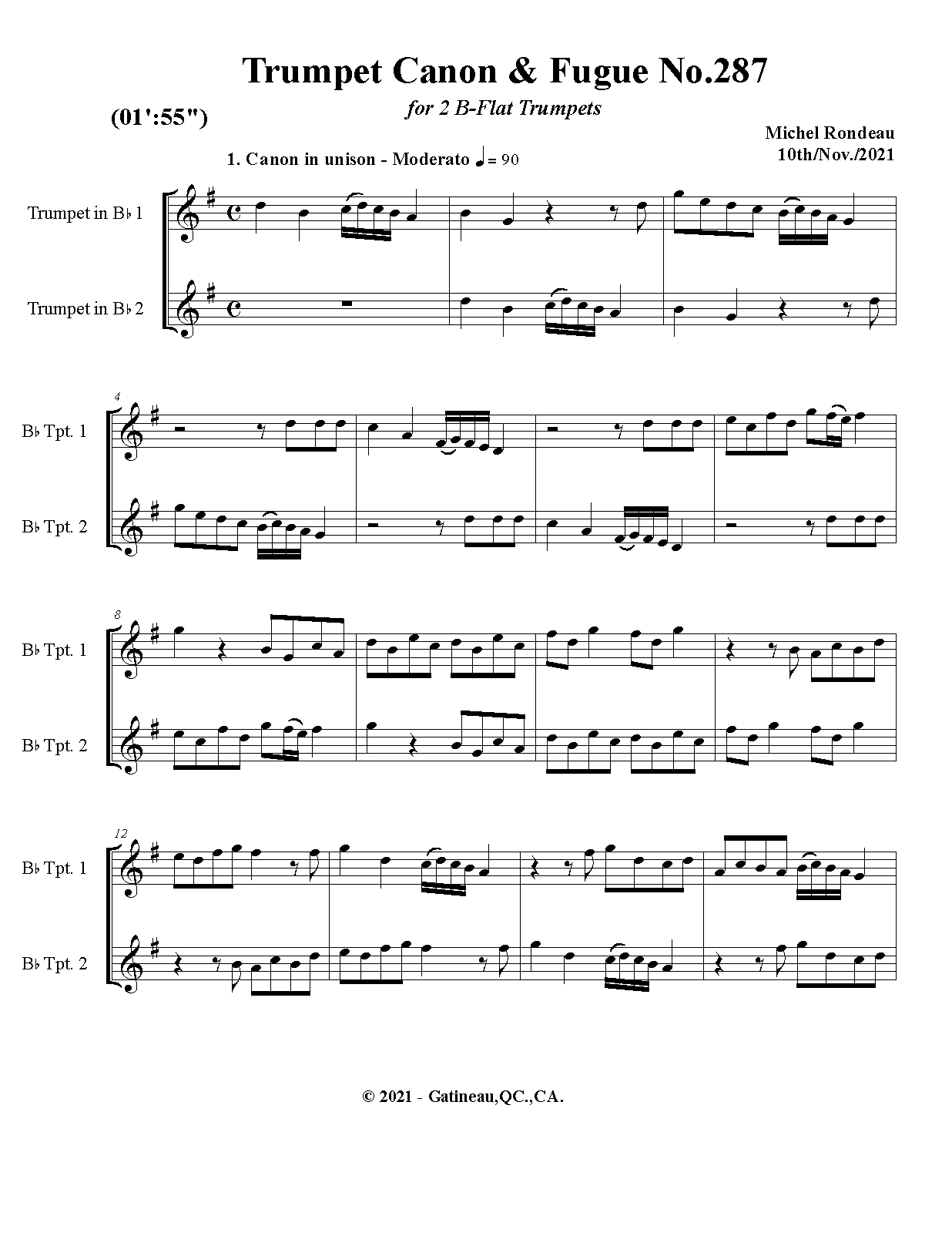 | Work Title | Trumpet Canon & Fugue No.287 |