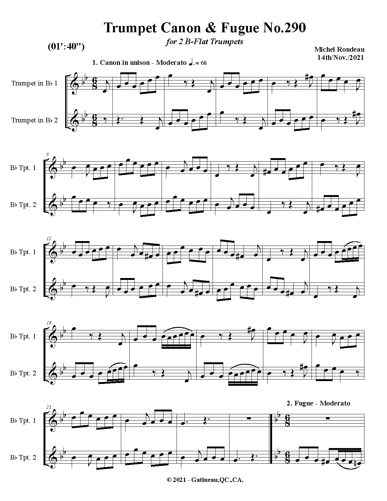 | Work Title | Trumpet Canon & Fugue No.290 |