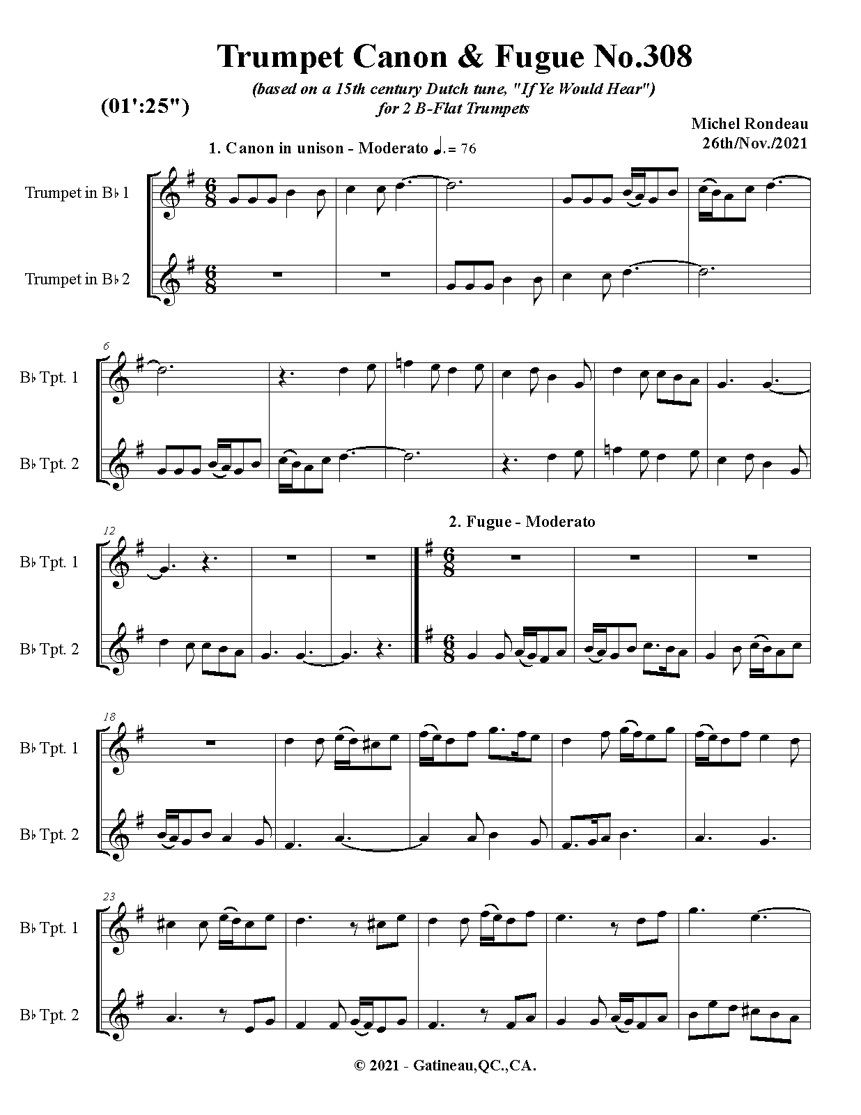 | Work Title | Trumpet Canon & Fugue No.308 |