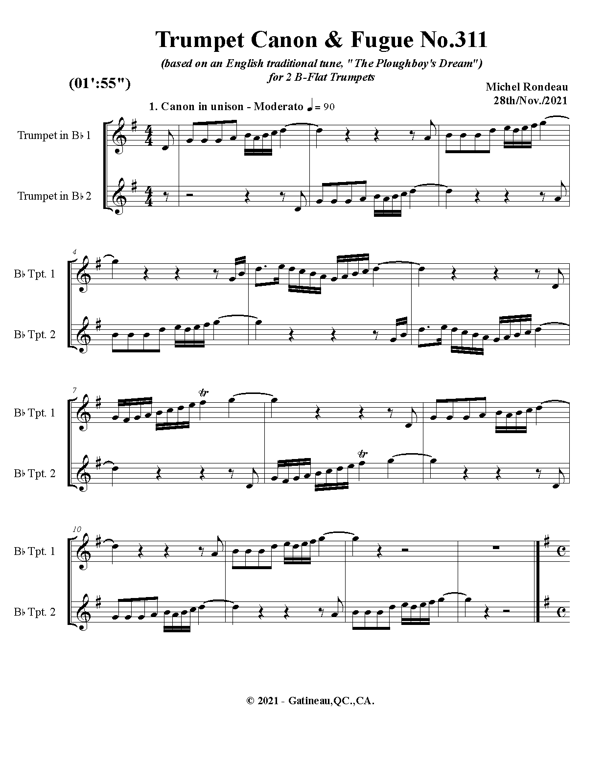 Trumpet Canon & Fugue No.311 (Rondeau, Michel)