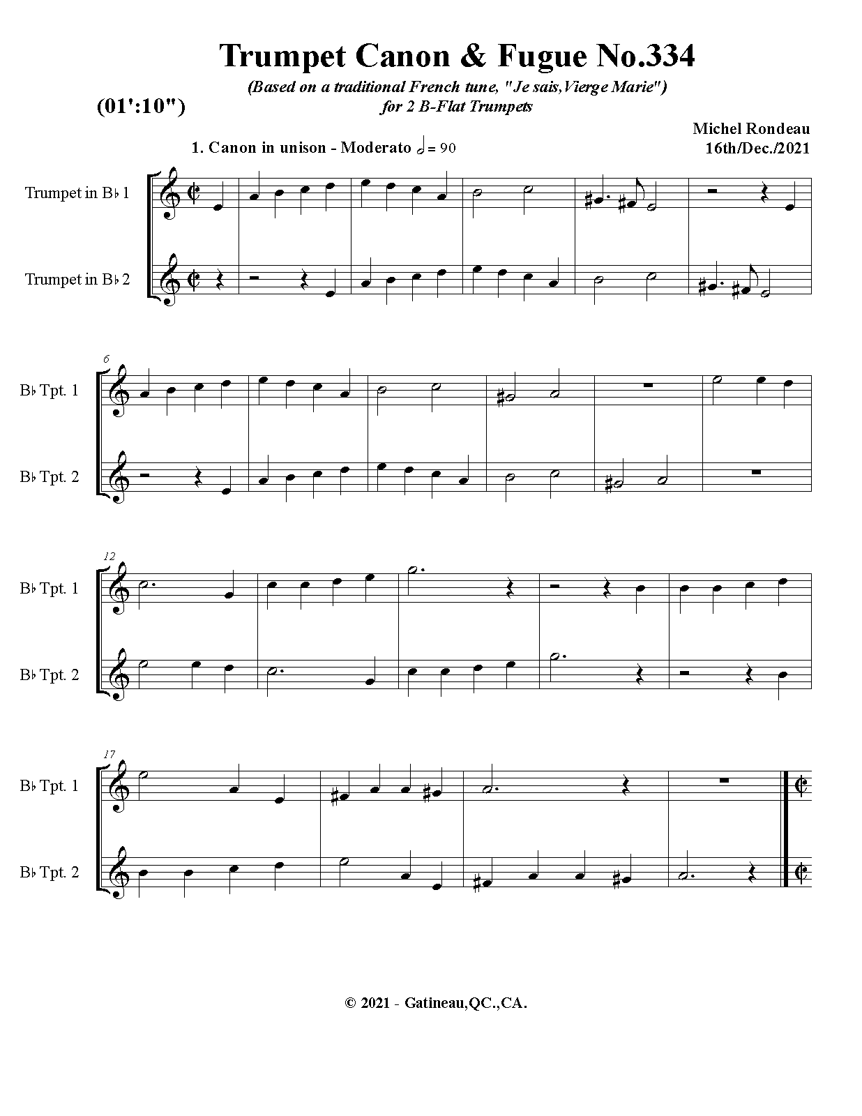 Trumpet Canon & Fugue No.334 (Rondeau, Michel)