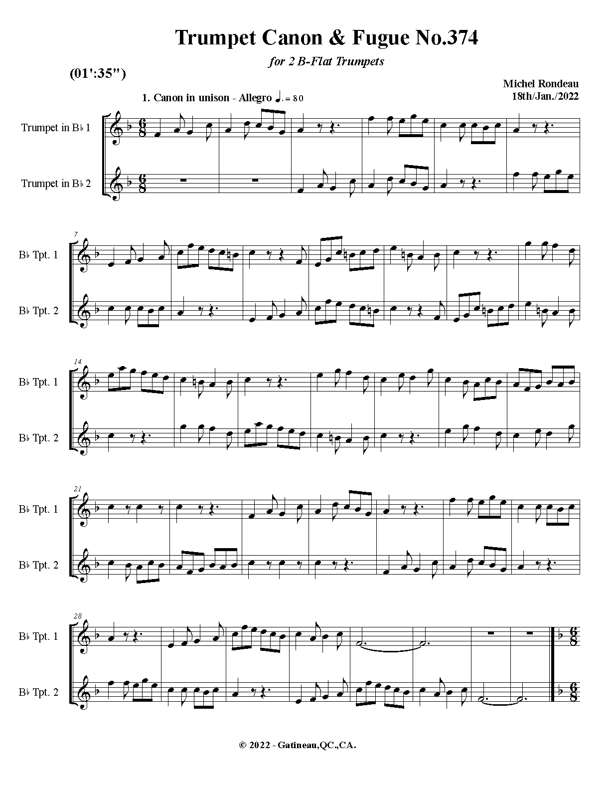 | Work Title | Trumpet Canon & Fugue No.374 |