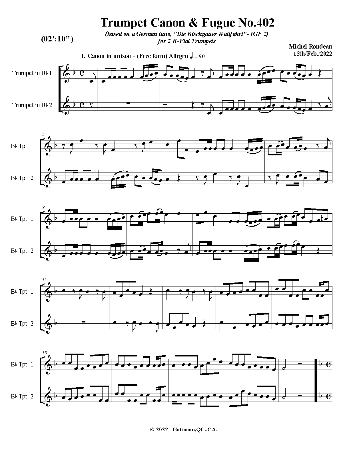 | Work Title | Trumpet Canon & Fugue No.402 |
