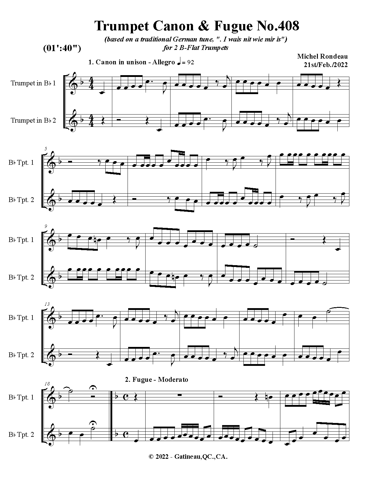 | Work Title | Trumpet Canon & Fugue No.408 |