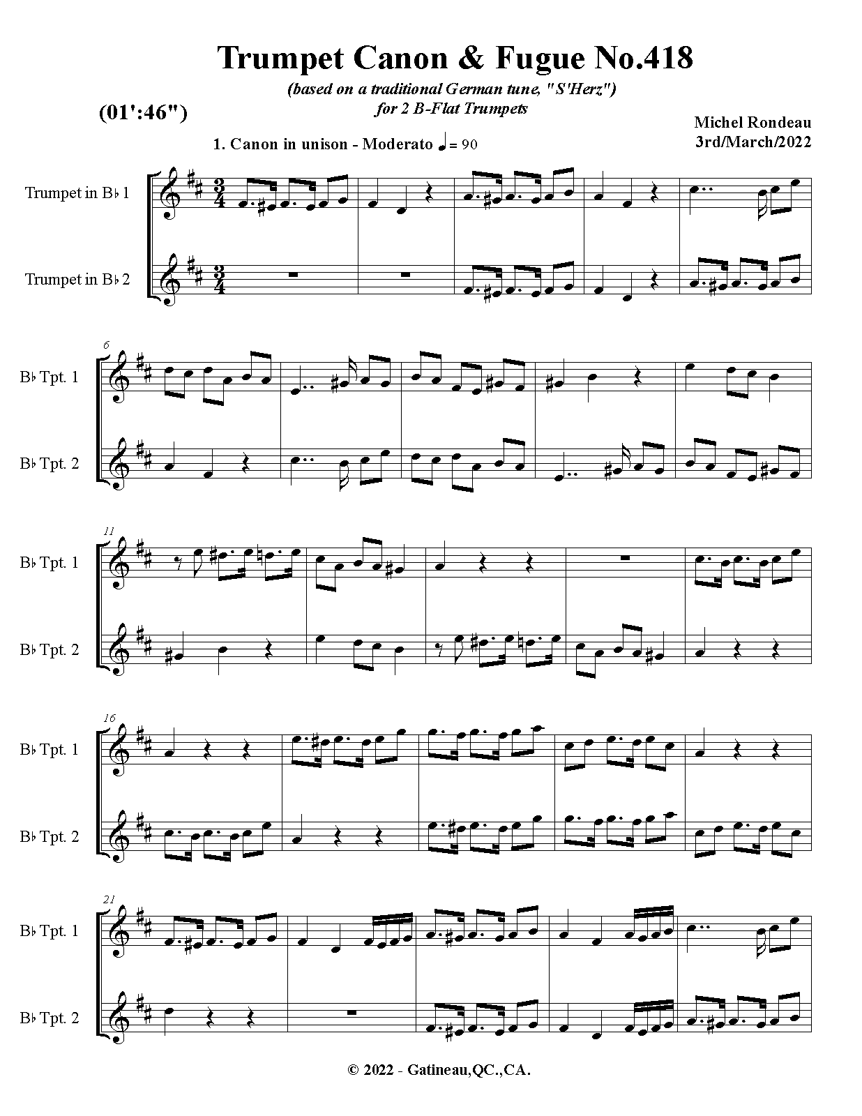 | Work Title | Trumpet Canon & Fugue No.418 |