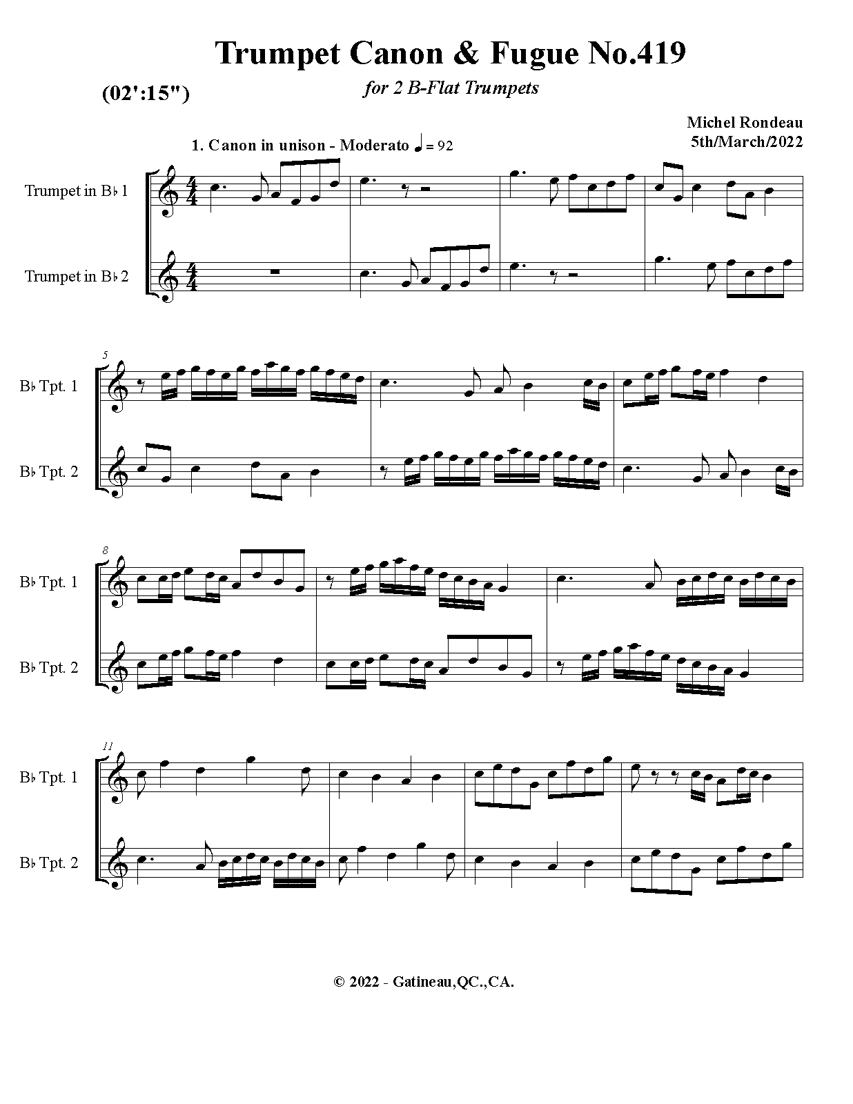 | Work Title | Trumpet Canon & Fugue No.419 |