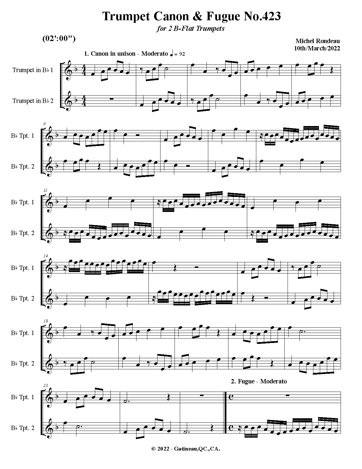 Trumpet Canon & Fugue No.423 (Rondeau, Michel)