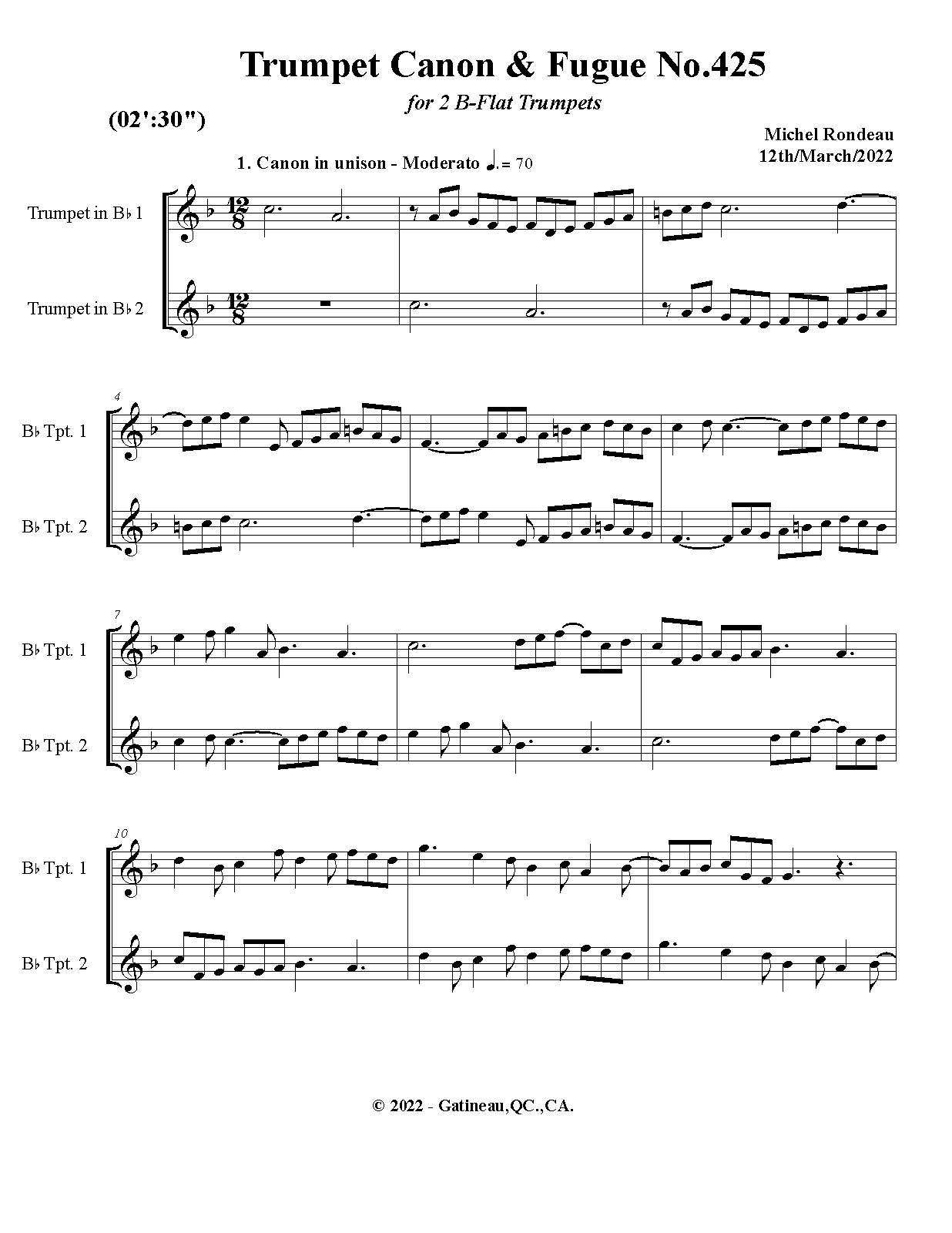 Trumpet Canon & Fugue No.425 (Rondeau, Michel)