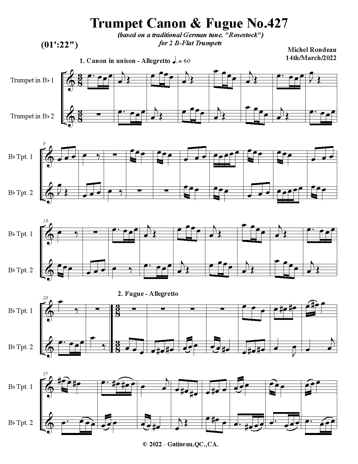 | Work Title | Trumpet Canon & Fugue No.427 |