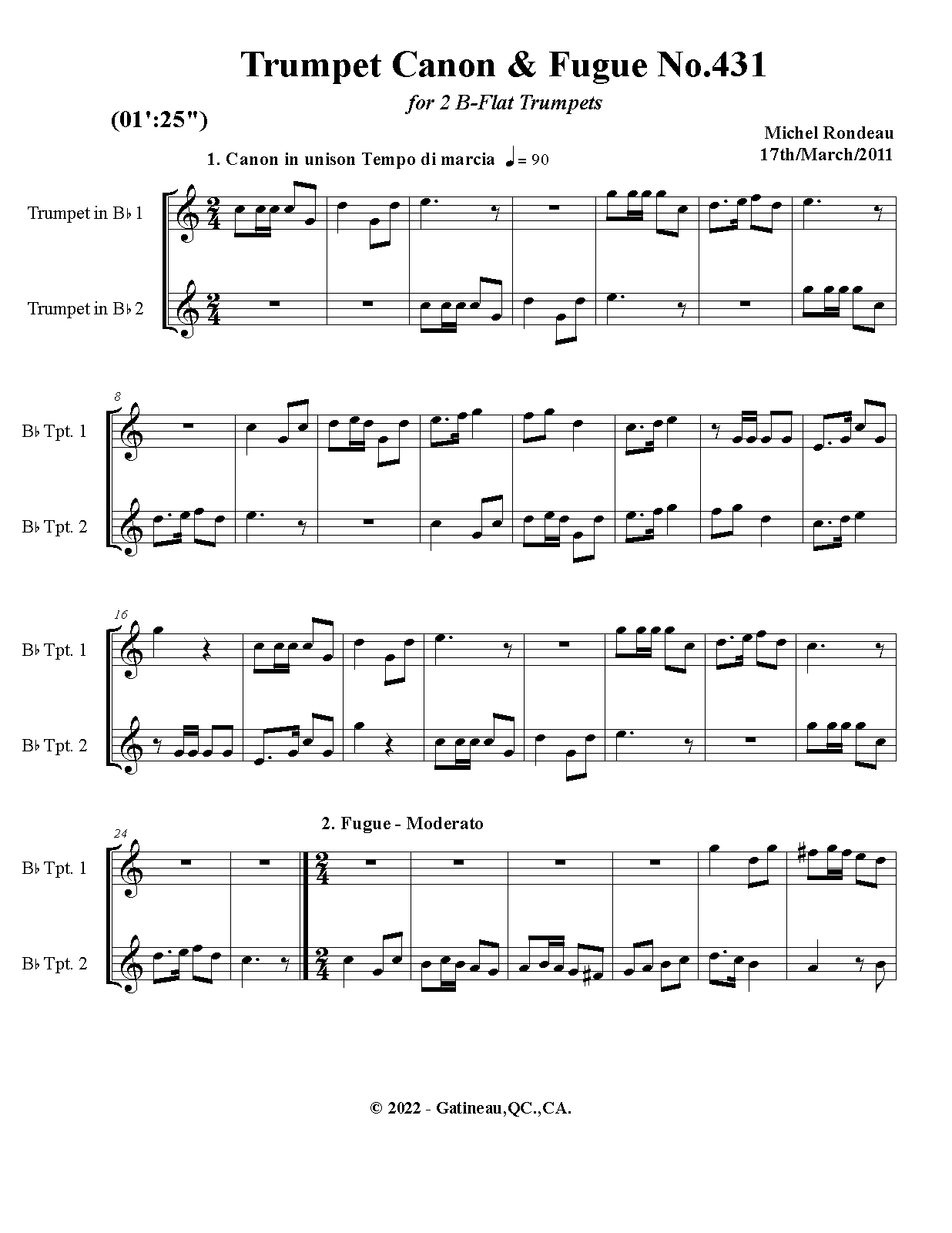| Work Title | Trumpet Canon & Fugue No.431 |