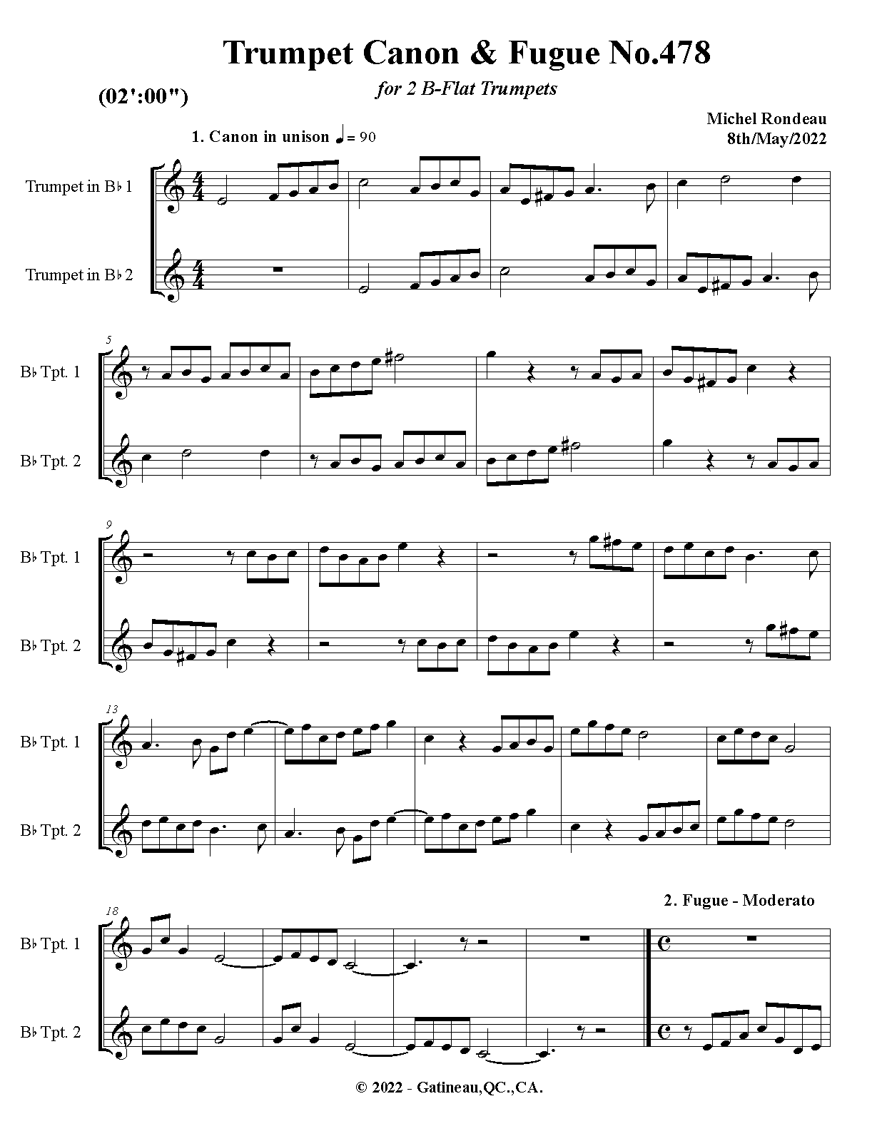 Trumpet Canon & Fugue No.478 (Rondeau, Michel)