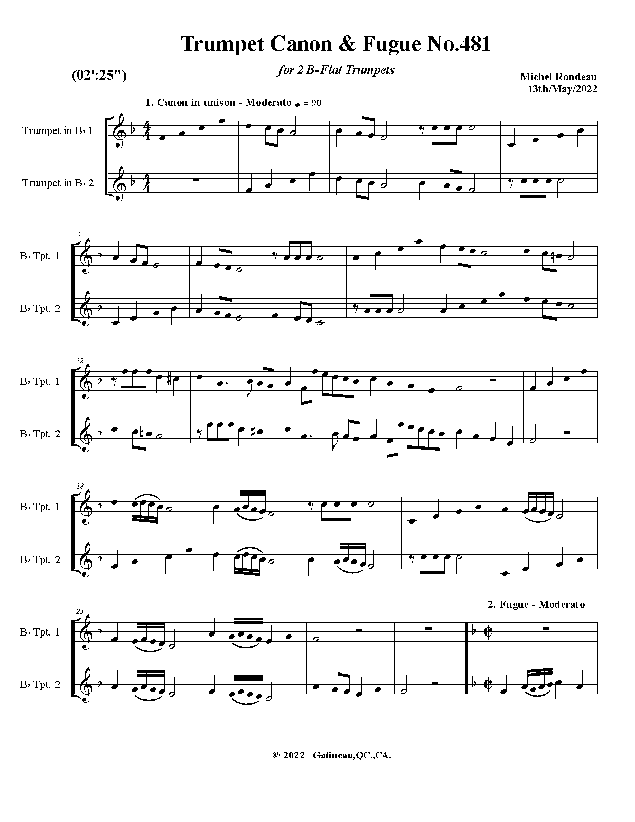 | Work Title | Trumpet Canon & Fugue No.481 |