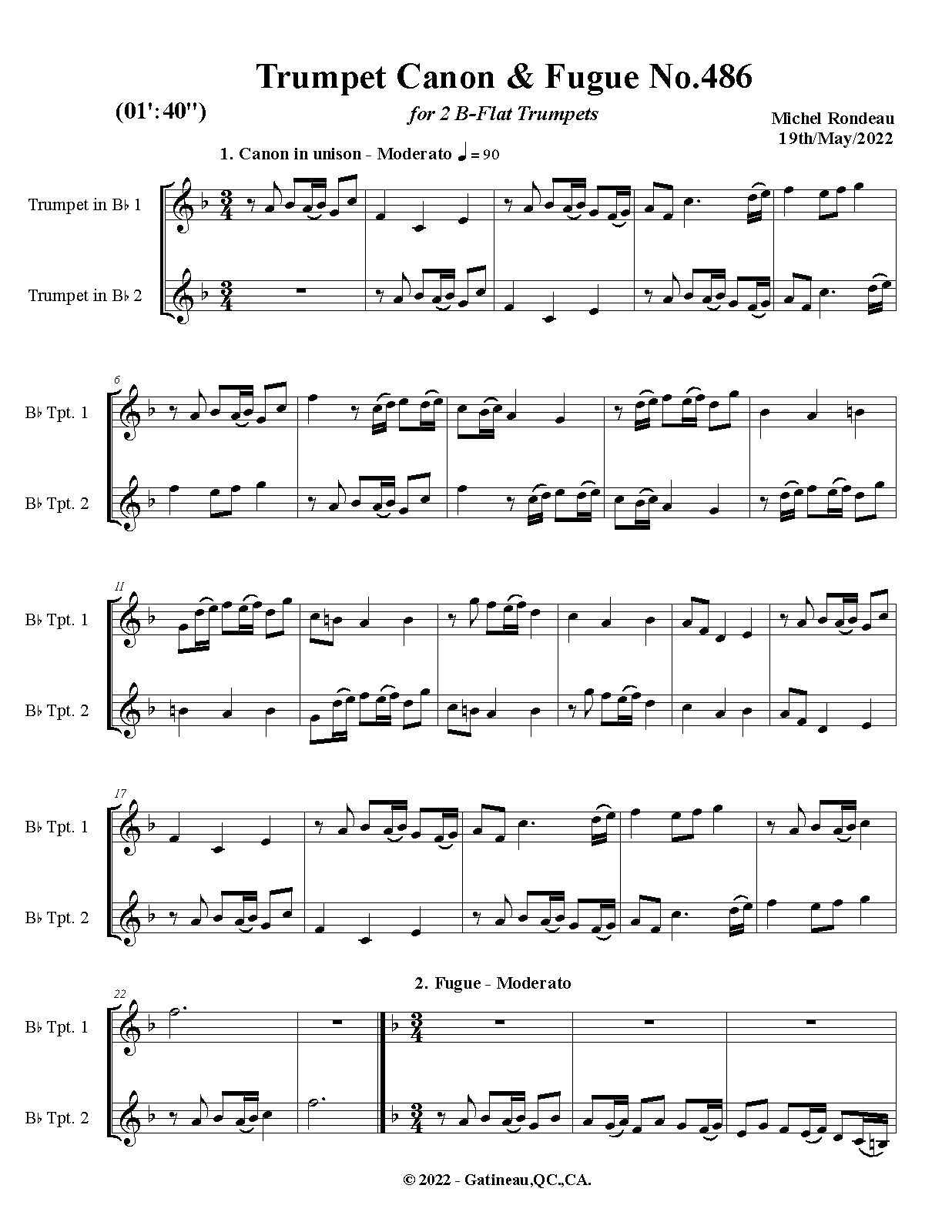 Work Title Trumpet Canon & Fugue No.486