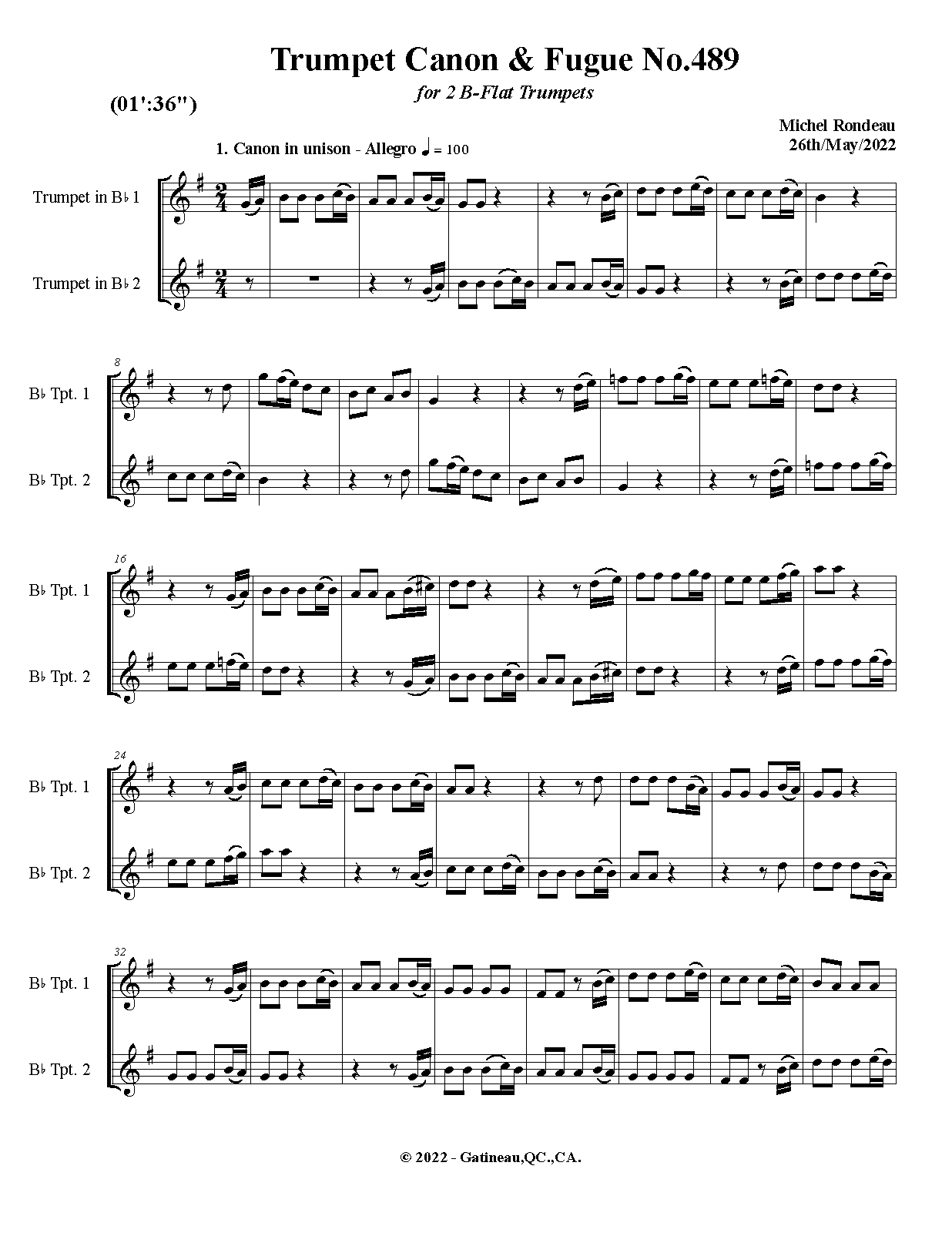 | Work Title | Trumpet Canon & Fugue No.489 |