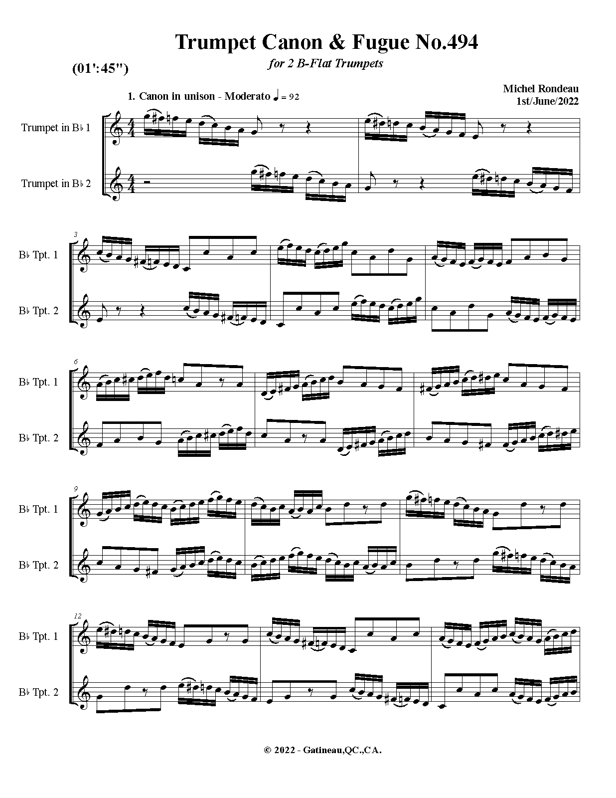 Work Title Trumpet Canon & Fugue No.494