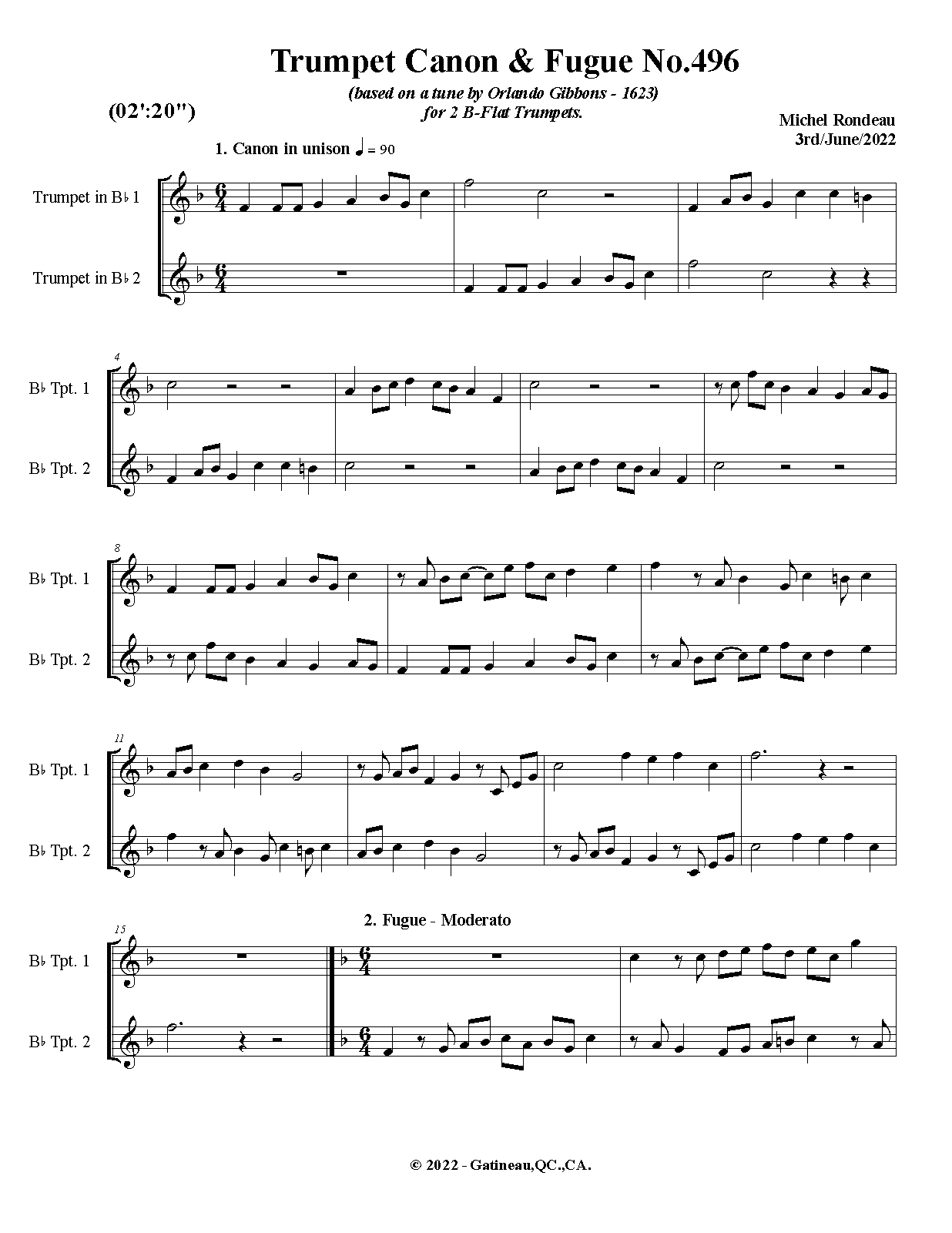 | Work Title | Trumpet Canon & Fugue No.496 |