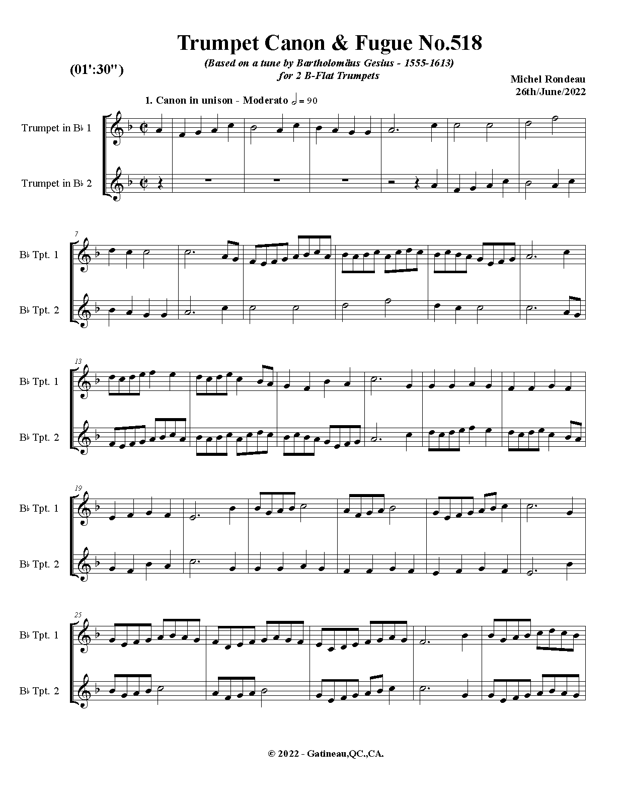 | Work Title | Trumpet Canon & Fugue No.518 |