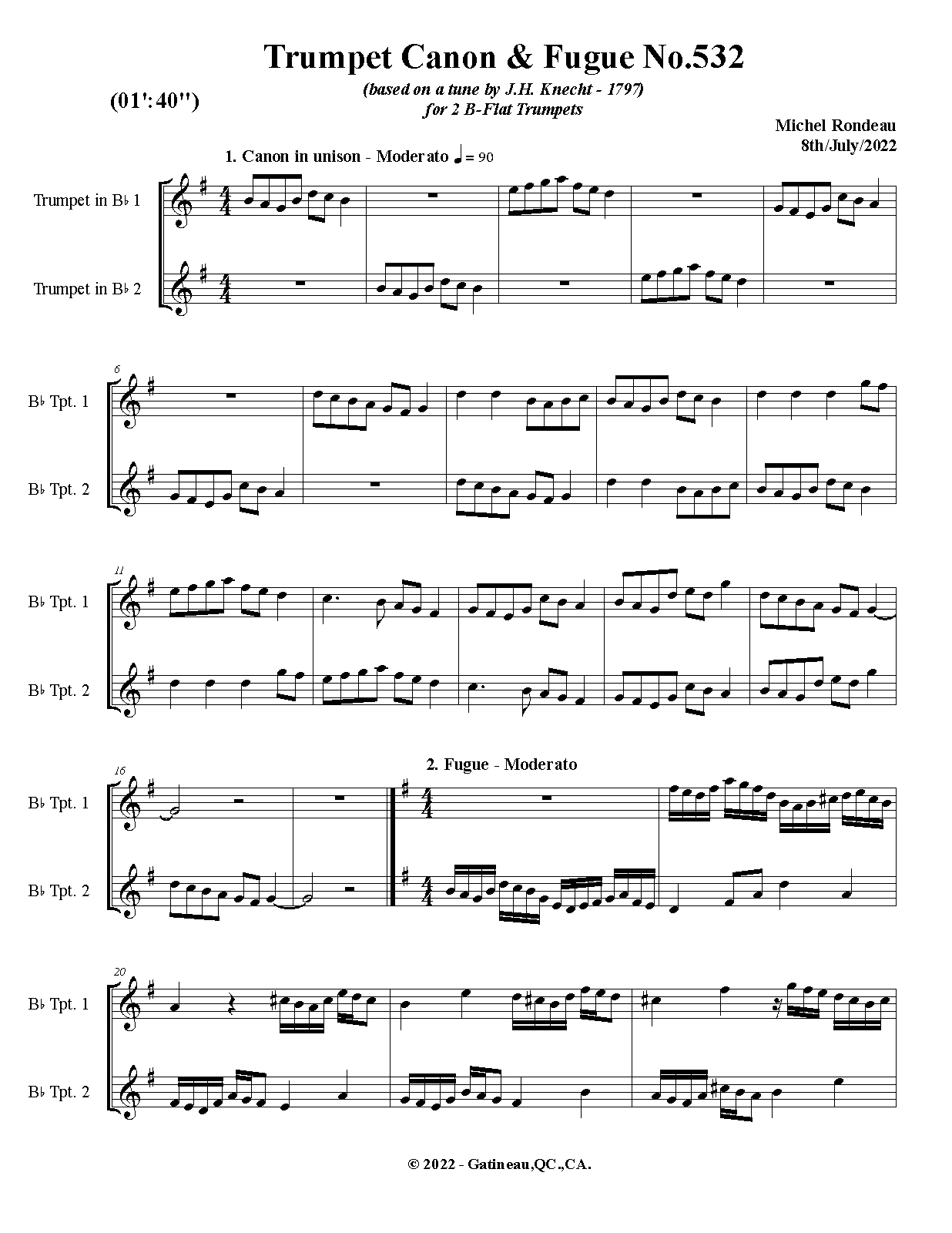 Trumpet Canon & Fugue No.532 (Rondeau, Michel)