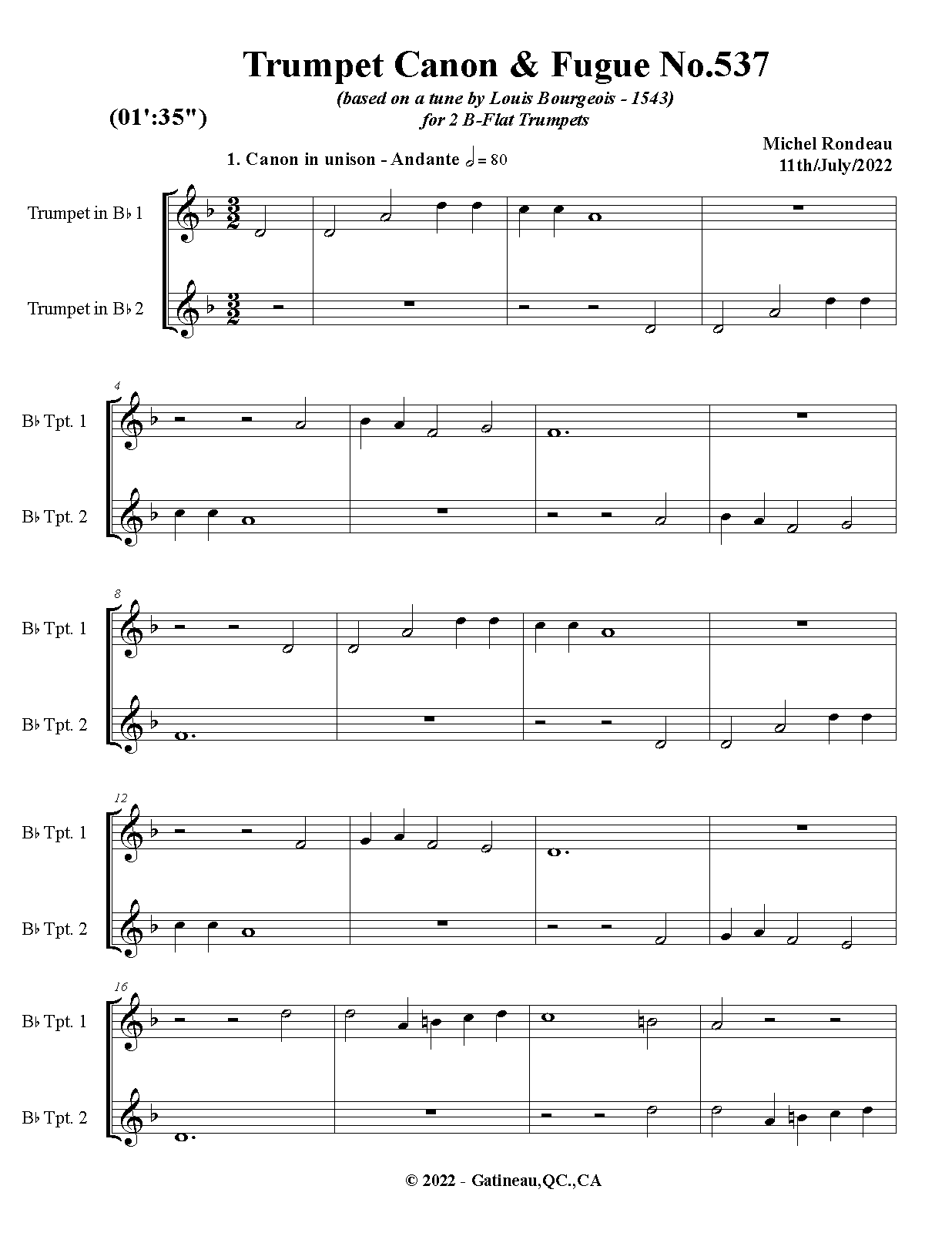 Trumpet Canon & Fugue No.537 (Rondeau, Michel)