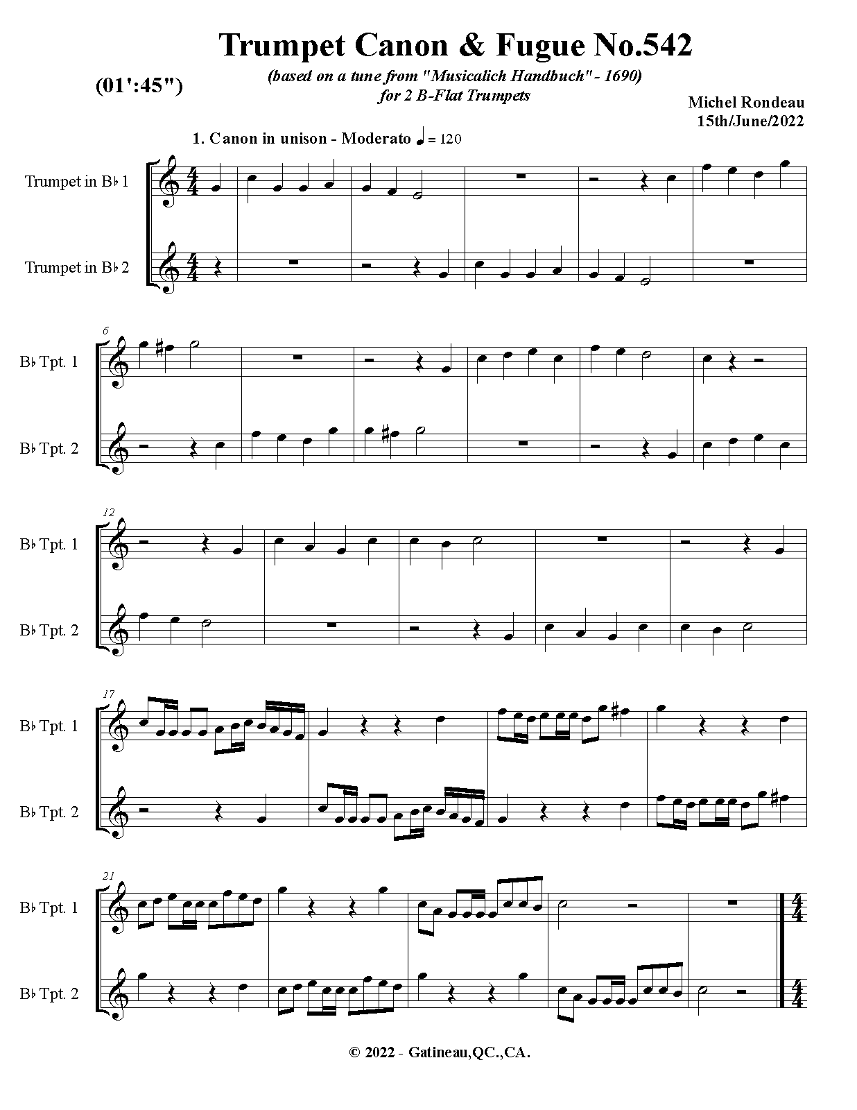 Work Title Trumpet Canon & Fugue No.542