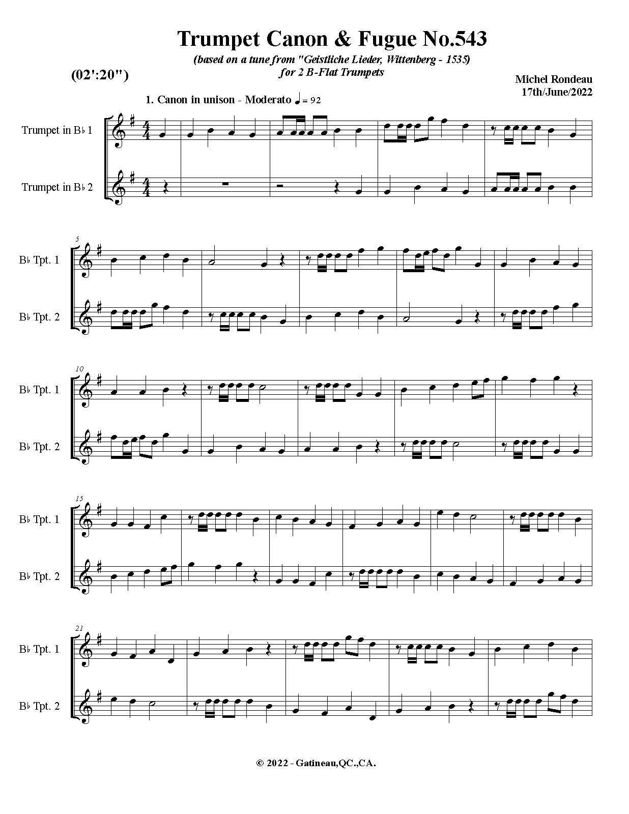 | Work Title | Trumpet Canon & Fugue No.543 |
