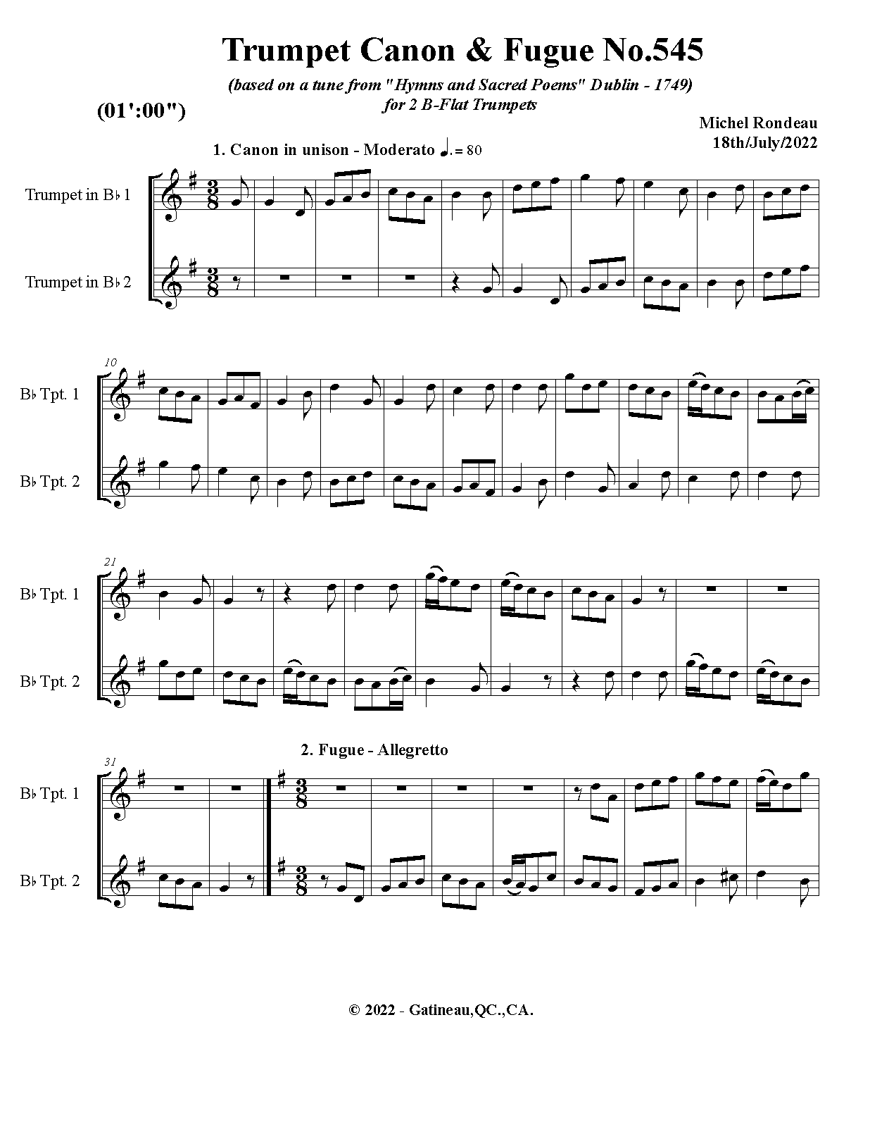 | Work Title | Trumpet Canon & Fugue No.545 |