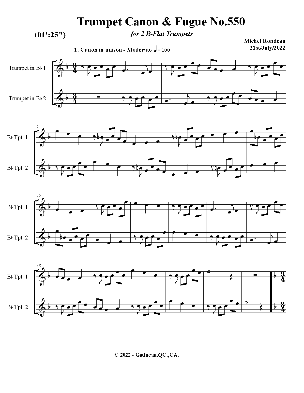 Trumpet Canon & Fugue No.550 (Rondeau, Michel)