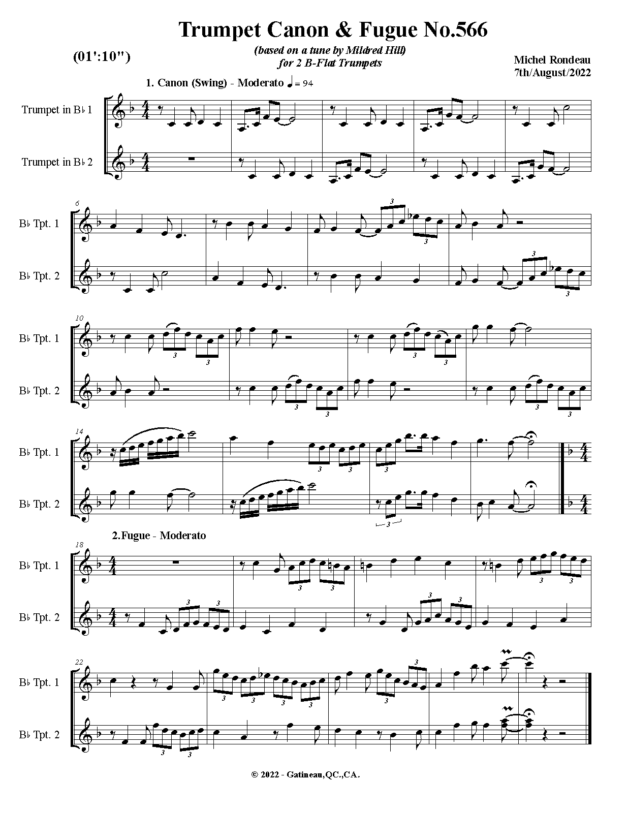 | Work Title | Trumpet Canon & Fugue No.566 |