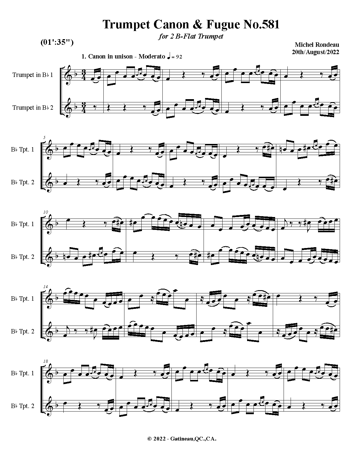 | Work Title | Trumpet Canon & Fugue No.581 |